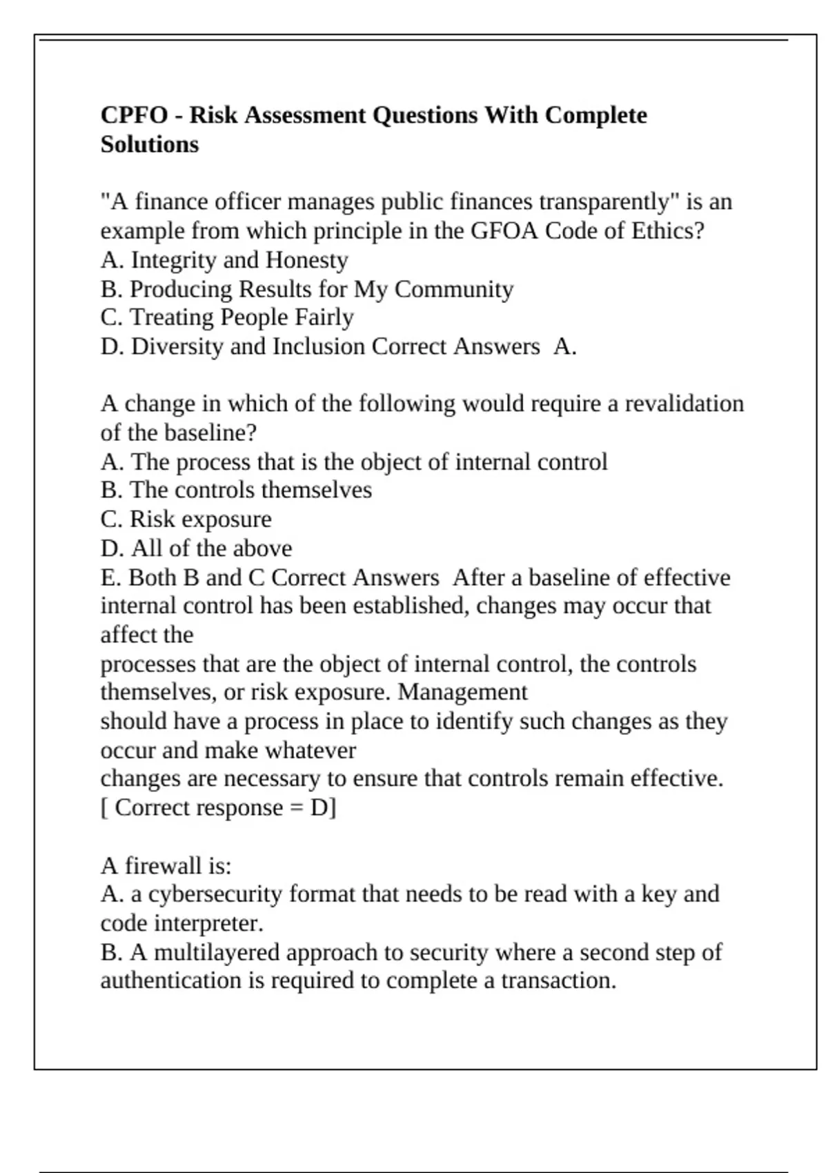D. Diversity and Inclusion Correct Answers A.