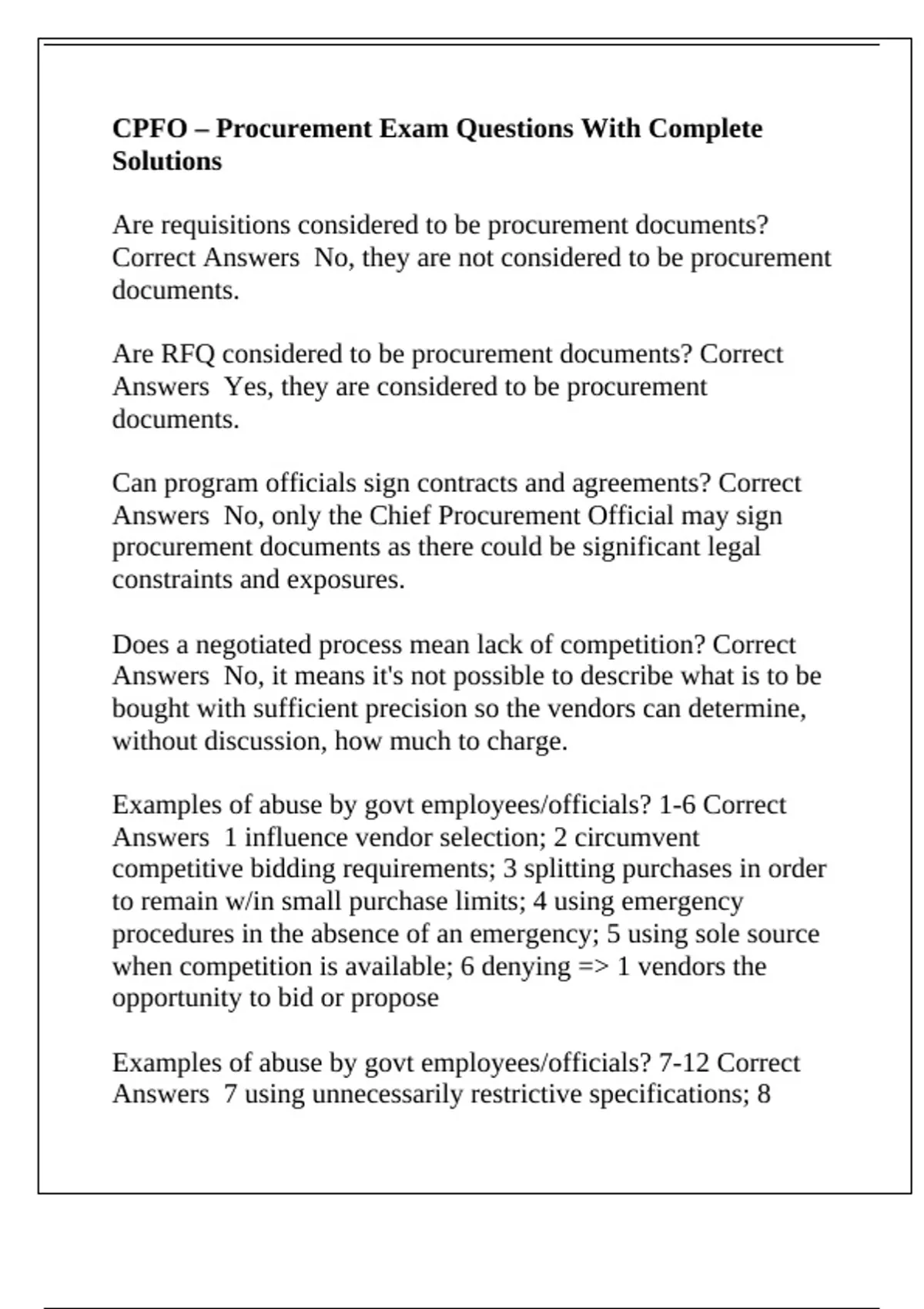 Are RFQ considered to be procurement documents? Correct