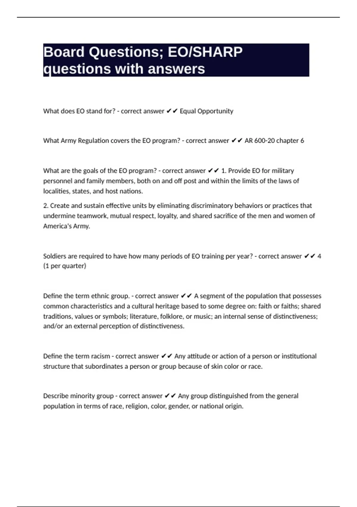 Soldiers are required to have how many periods of EO training per year? - correct answer ✔✔ 4