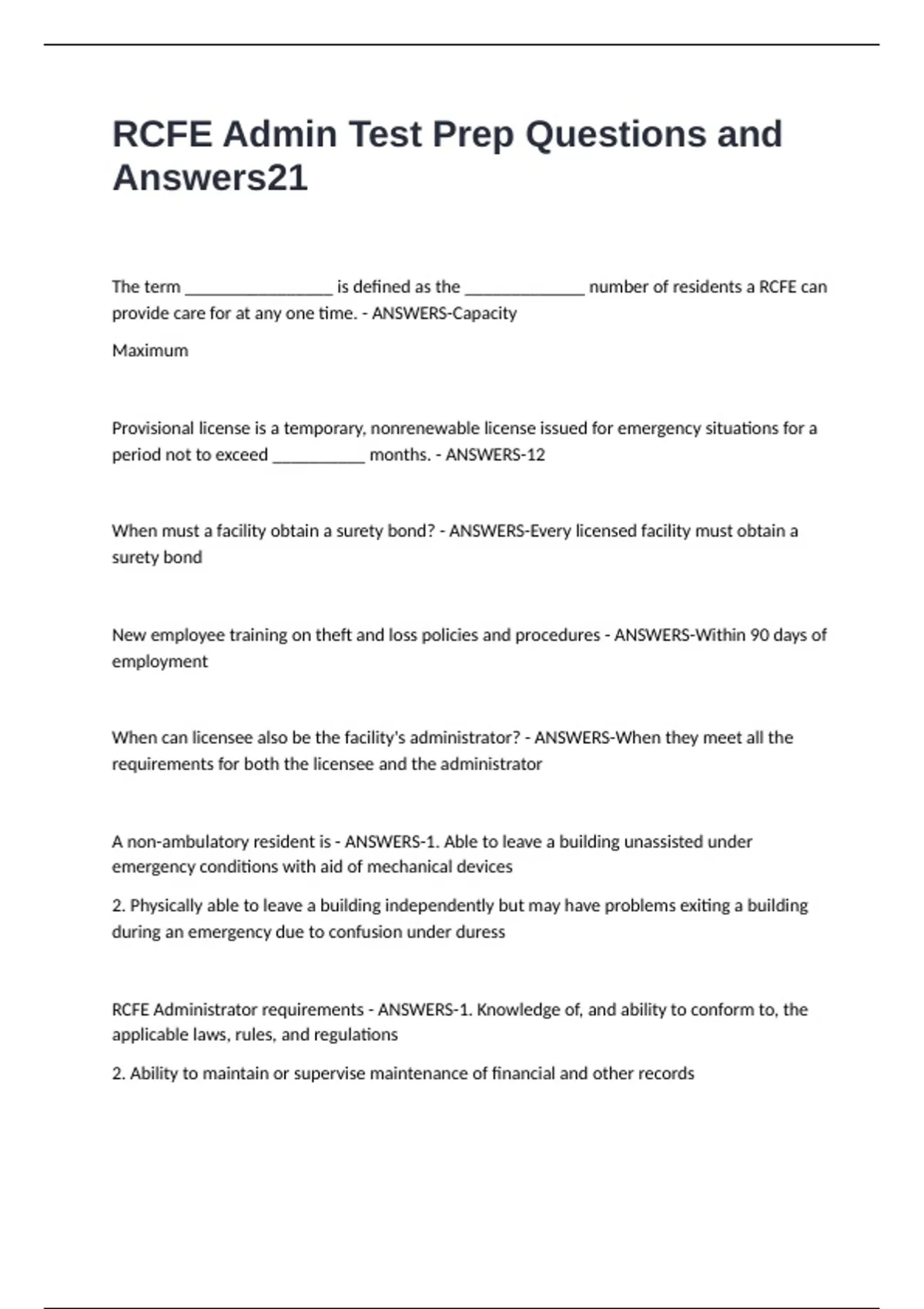 RCFE Administrator requirements - ANSWERS-1. Knowledge of, and ability to conform to, the