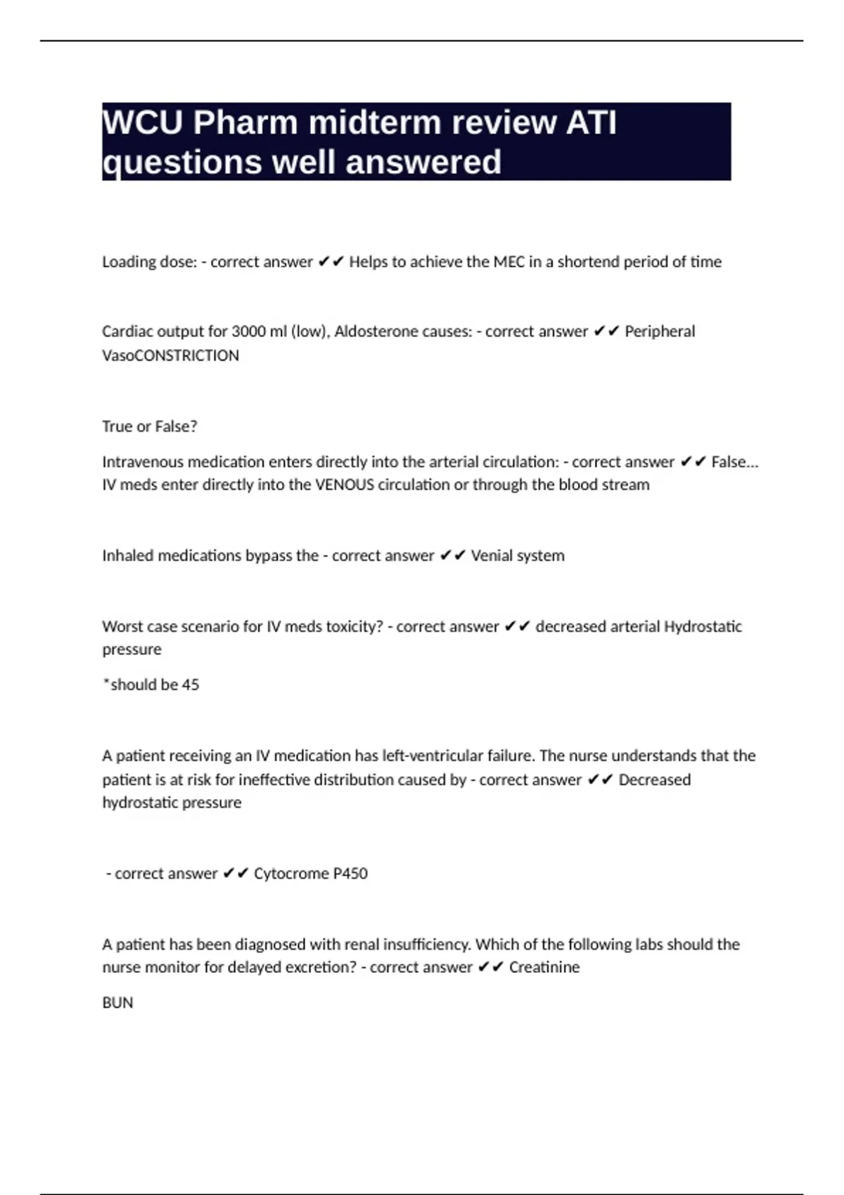 Loading dose: - correct answer ✔✔ Helps to achieve the MEC in a shortend period of time