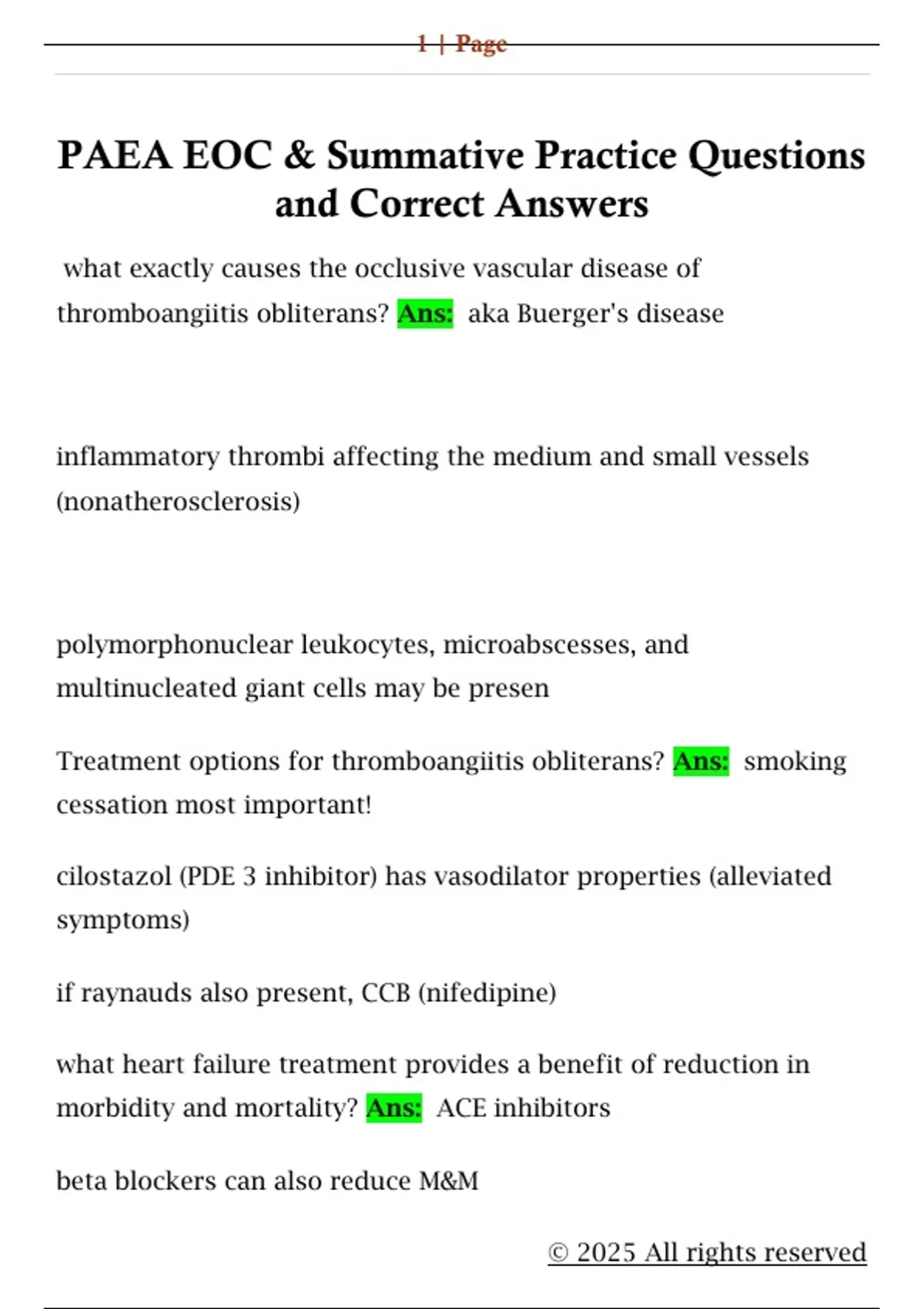 PAEA EOC & Summative Practice Questions