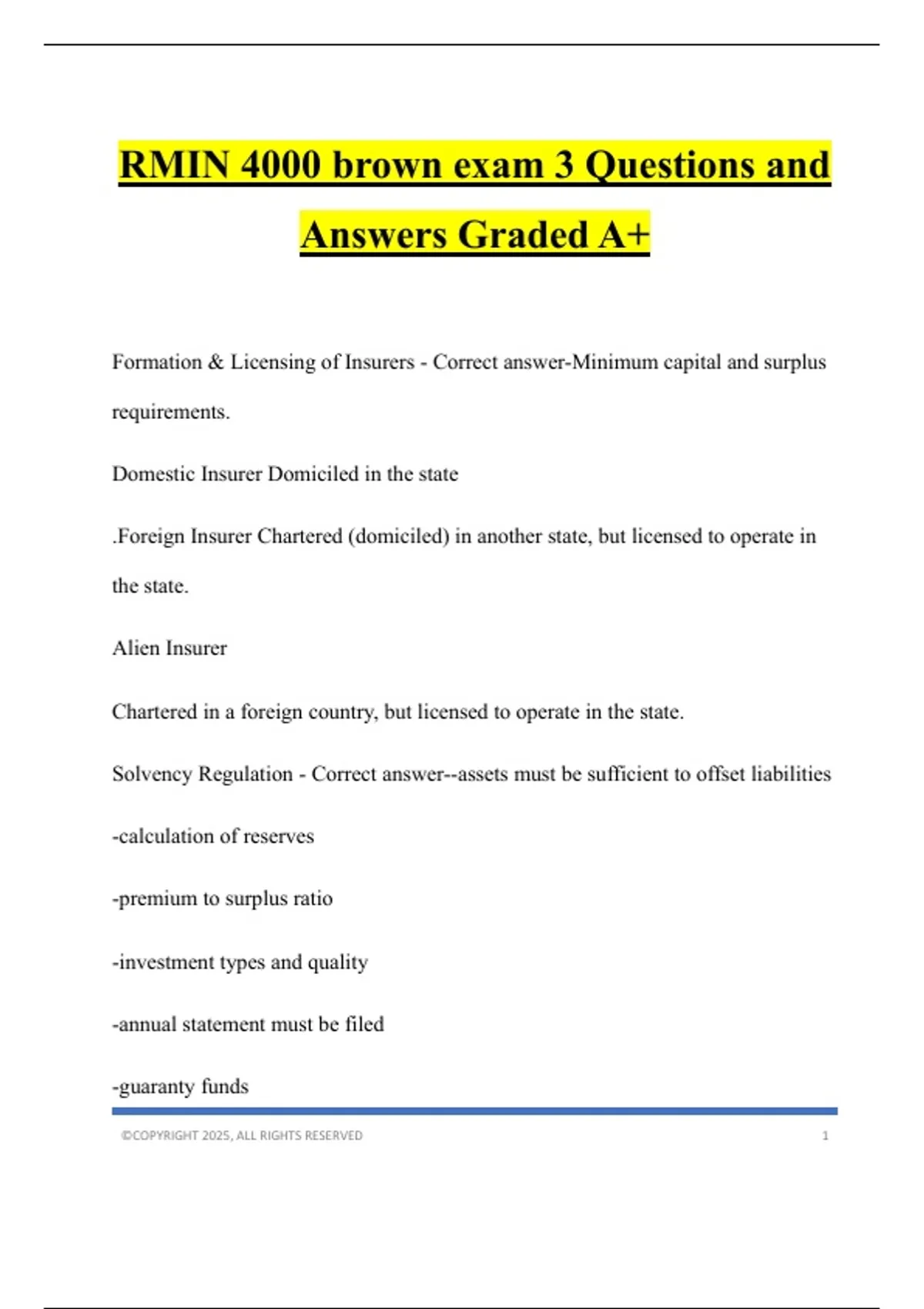 Solvency Regulation - Correct answer--assets must be sufficient to offset liabilities