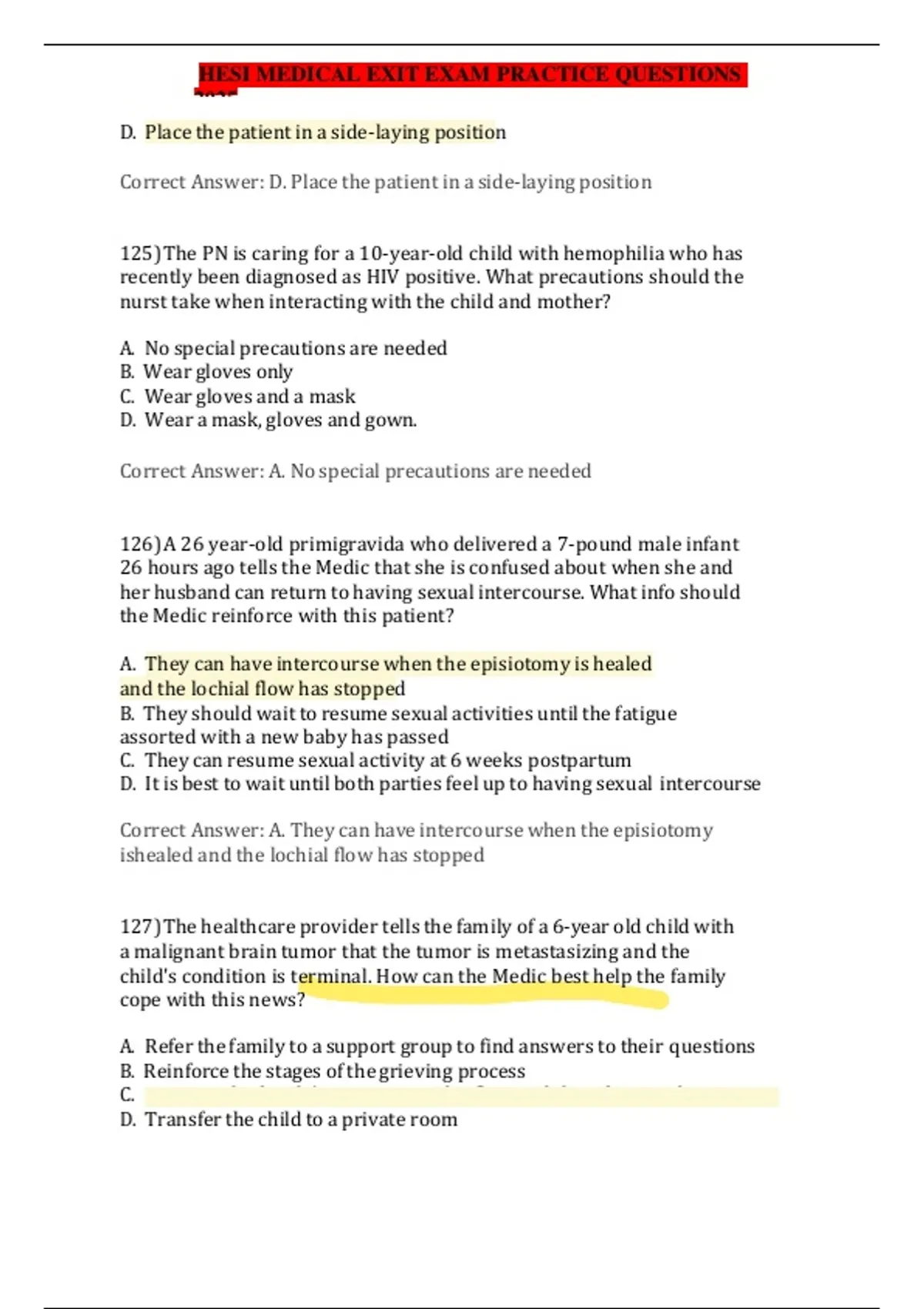 HESI MEDICAL EXIT EXAM PRACTICE QUESTIONS