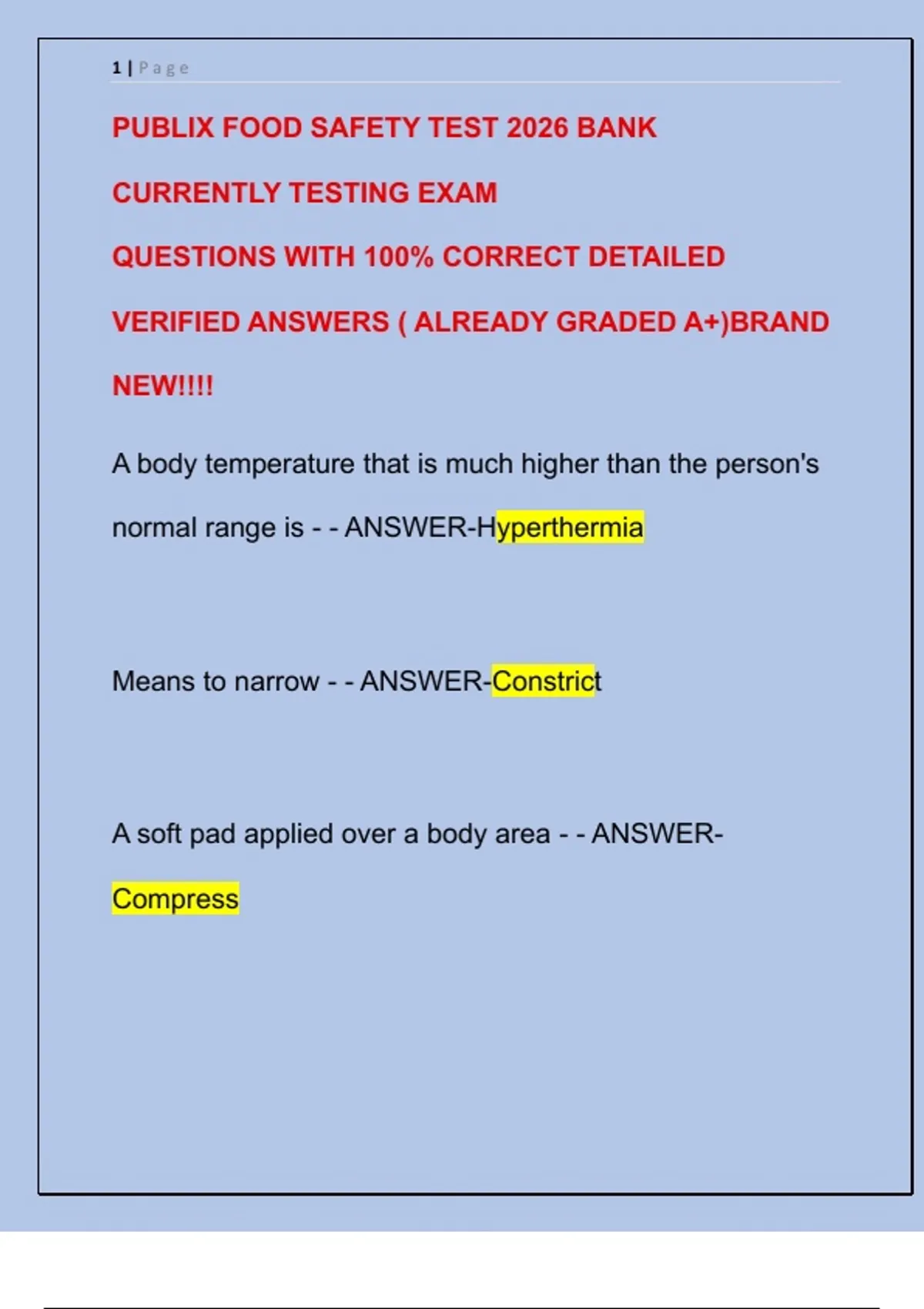 PUBLIX FOOD SAFETY TEST 2026 BANK