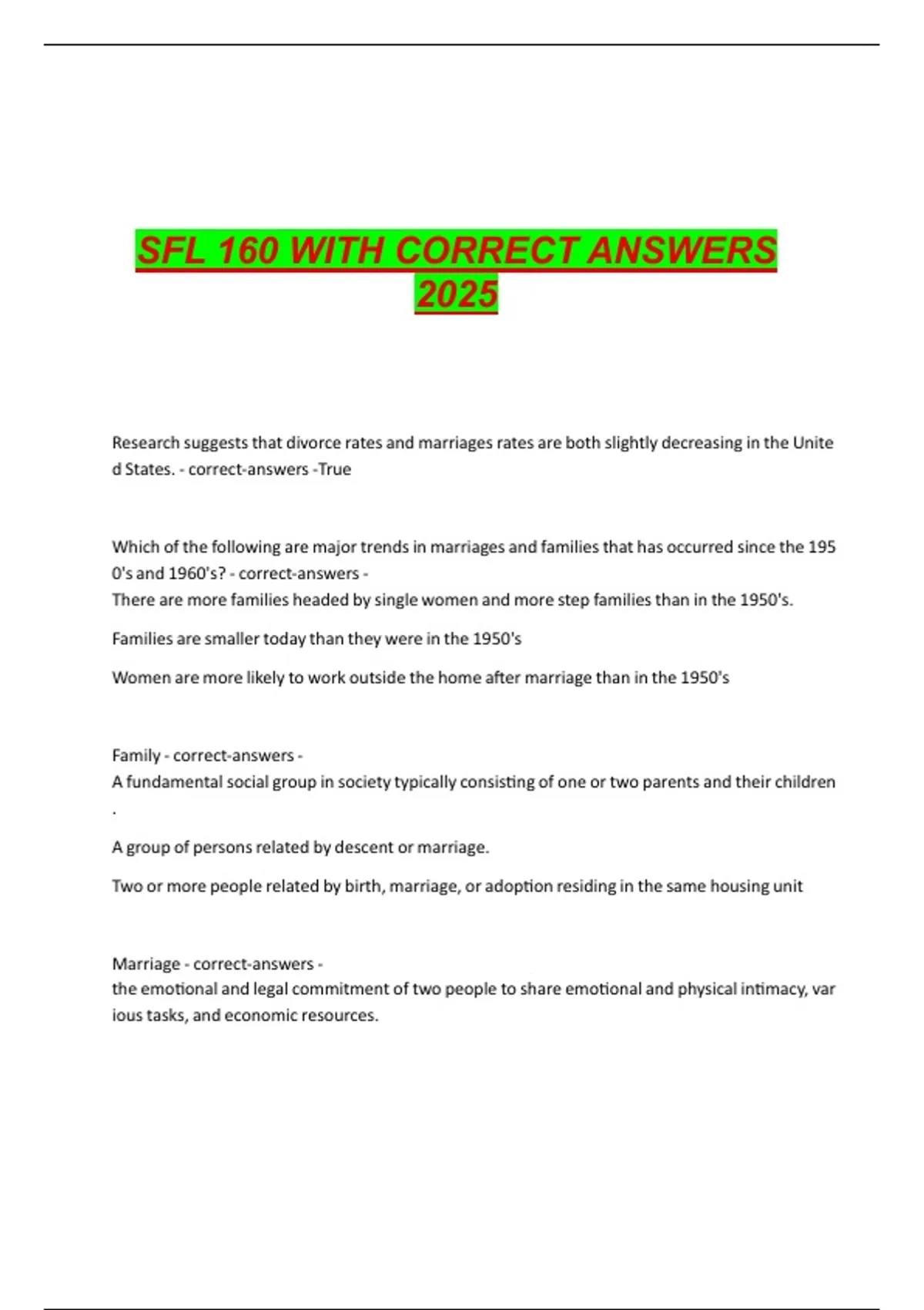 SFL 160 WITH CORRECT ANSWERS