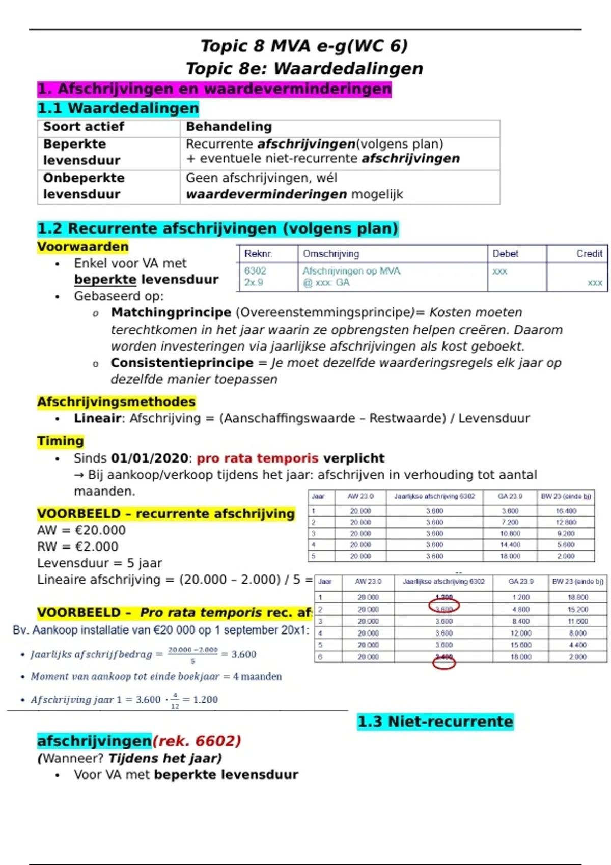 Heldere en volledige samenvatting van Topic 8 MVA (deel e–g): waardedalingen, waardeverminderingen, herwaarderingen en verkoop van vaste activa. Inclusief alle definities, regels, afschrijvingsmethodes, pro rata-berekeningen, voorbeelden, stappenplannen en boekingen volgens KU Leuven-presentatie. Ideaal ter voorbereiding op het examen Accounting.