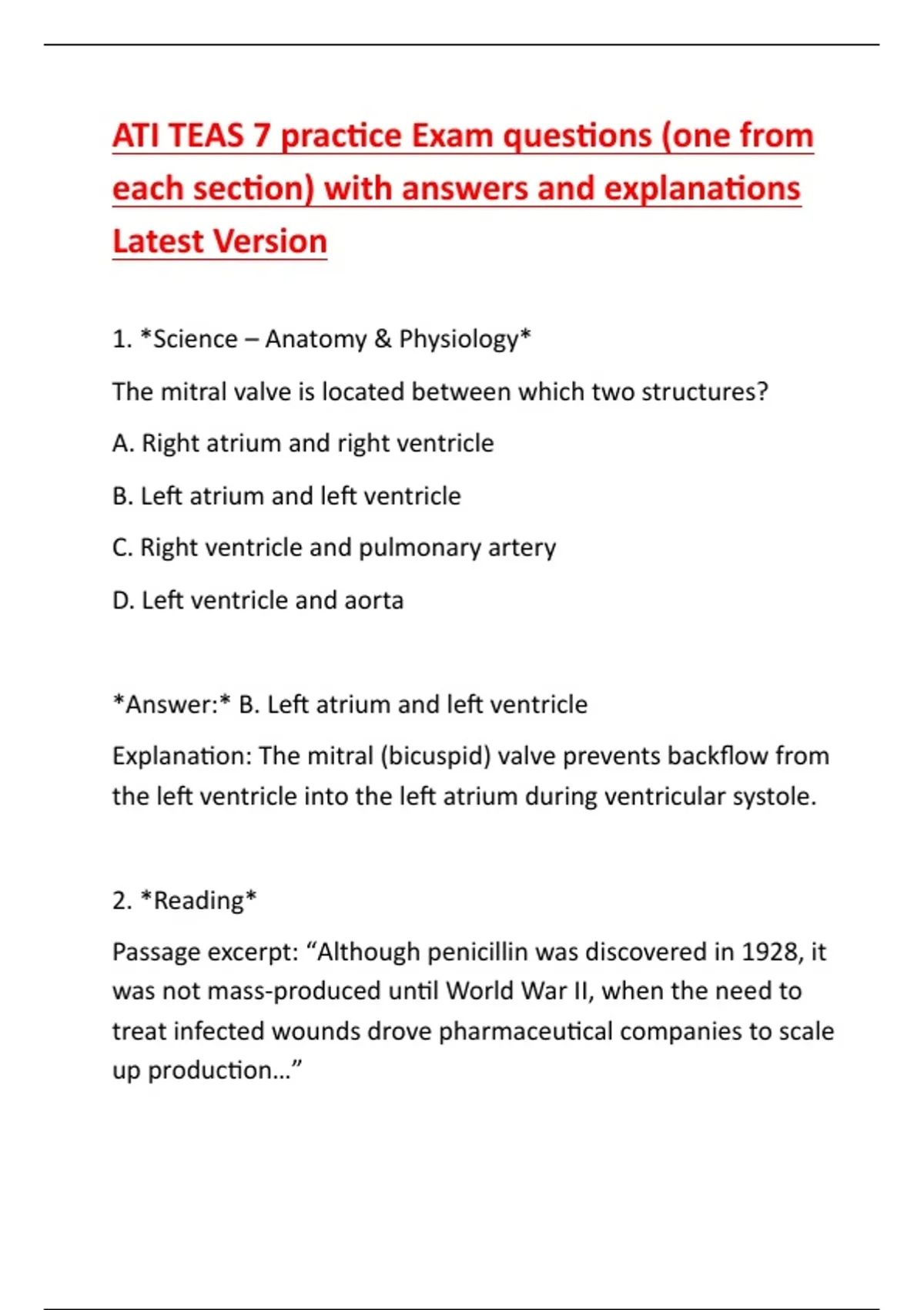 ATI TEAS 7 practice Exam questions (one from