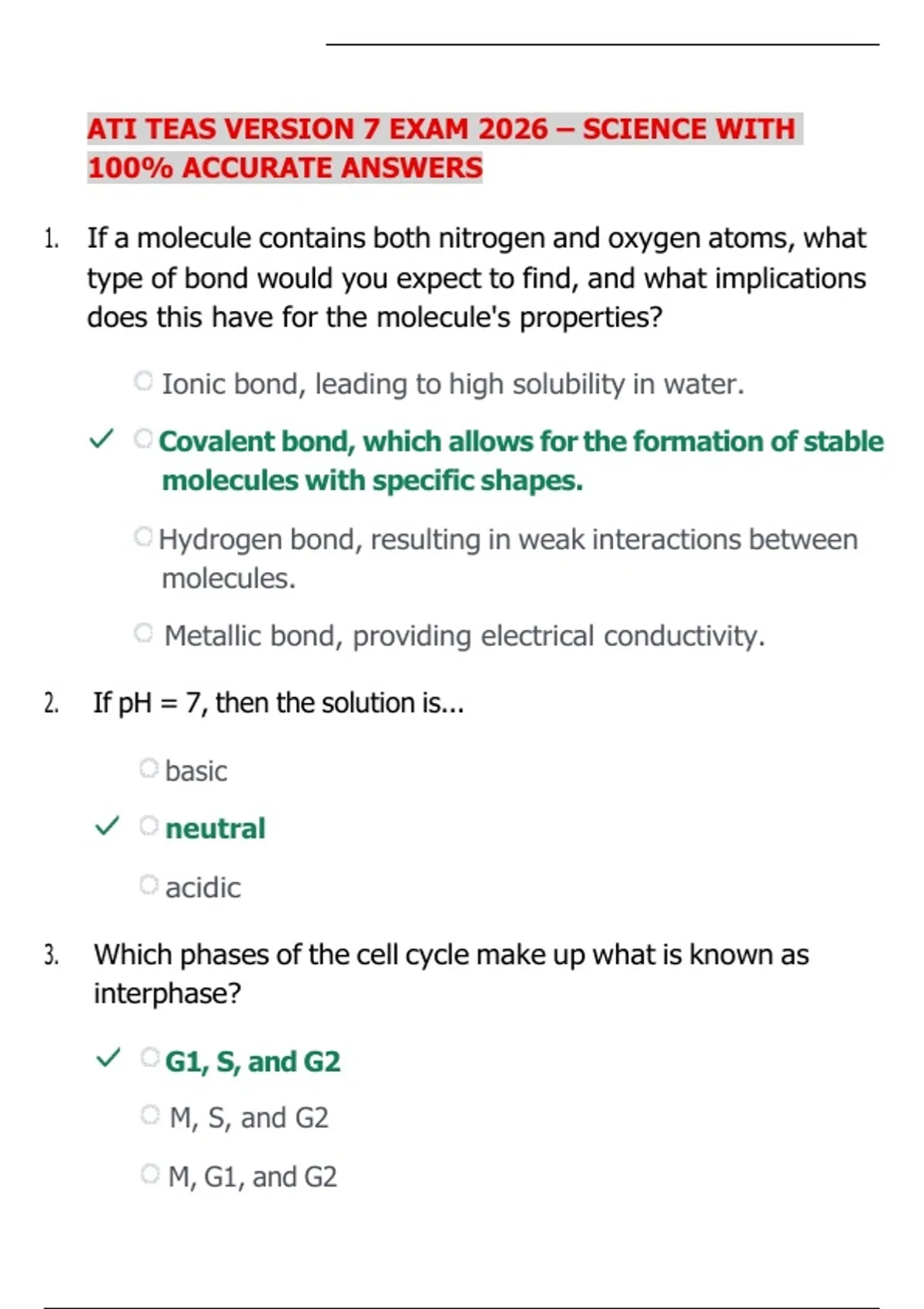 ATI TEAS VERSION 7 EXAM 2026 – SCIENCE WITH