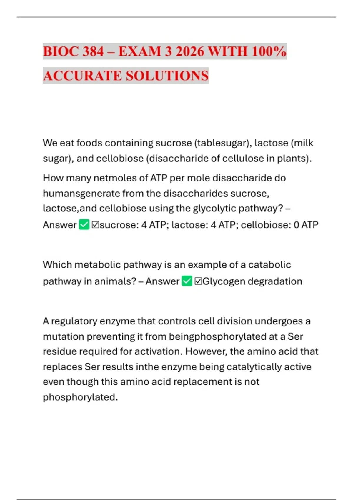 BIOC 384 – EXAM 3 2026 WITH 100%