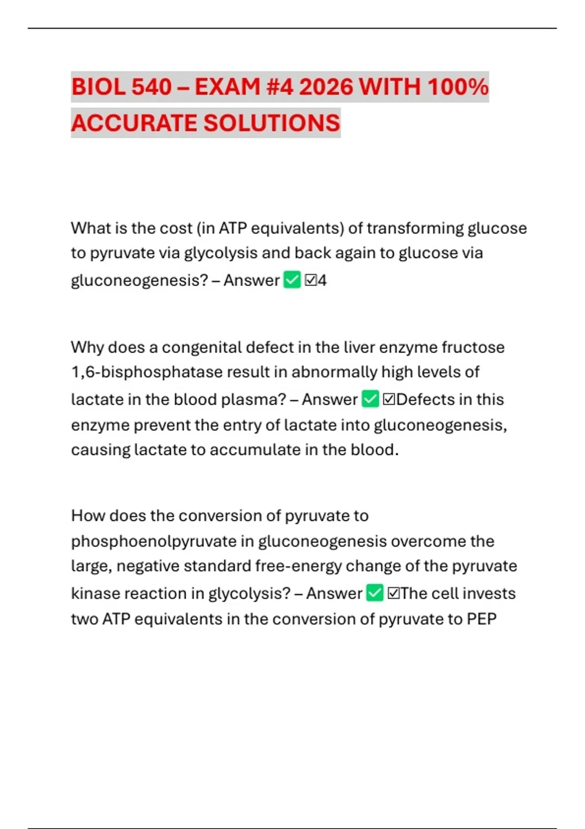 BIOL 540 – EXAM #4 2026 WITH 100%