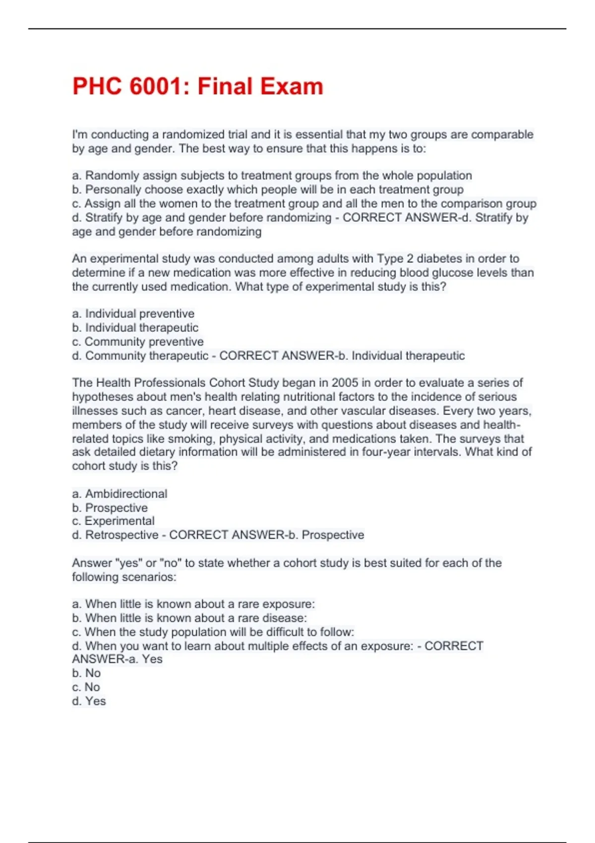 d. Retrospective - CORRECT ANSWER-b. Prospective