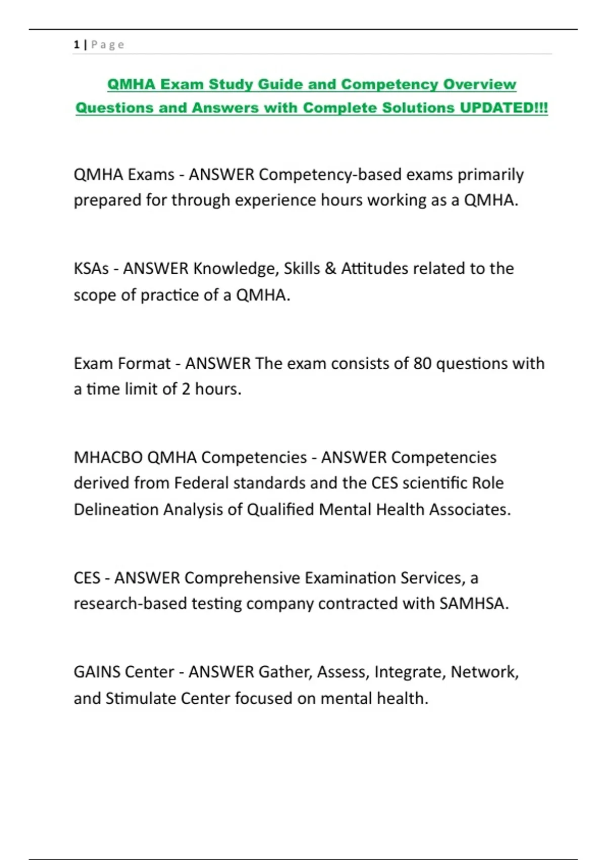 QMHA Exam Study Guide and Competency Overview