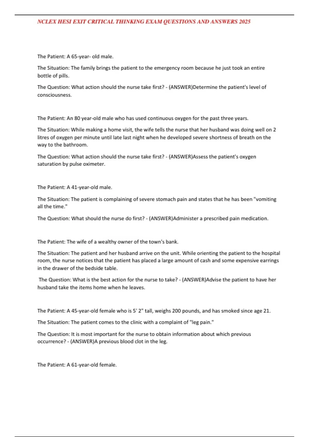 NCLEX HESI EXIT CRITICAL THINKING EXAM QUESTIONS AND ANSWERS 2025