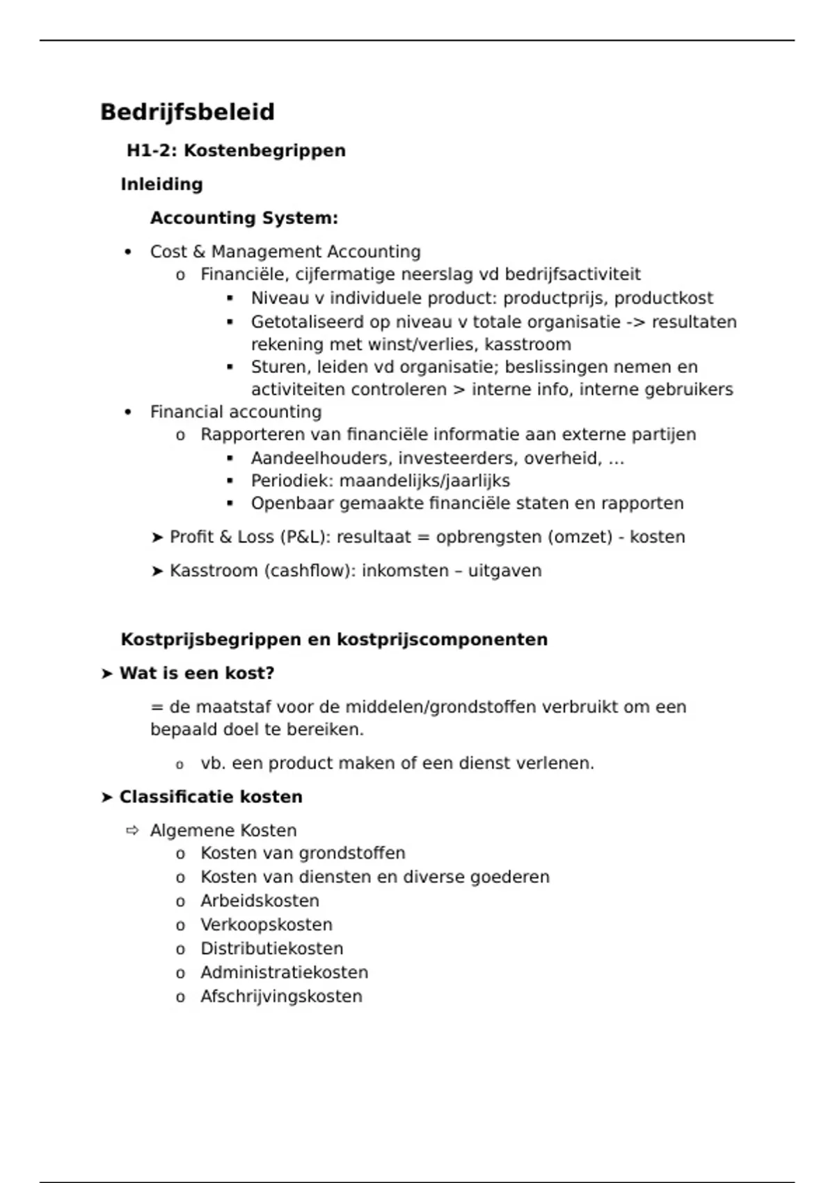 �Kostprijsbegrippen en kostprijscomponenten