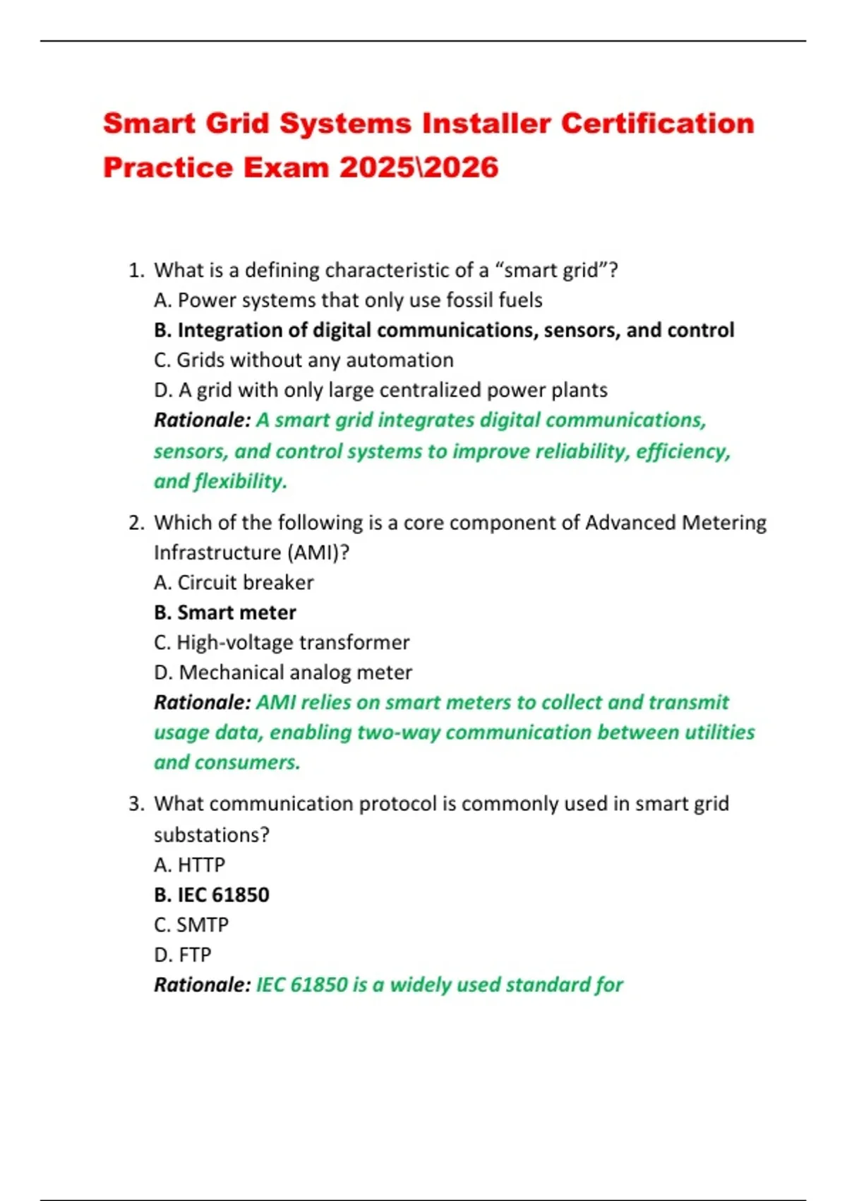 Rationale: A smart grid integrates digital communications,