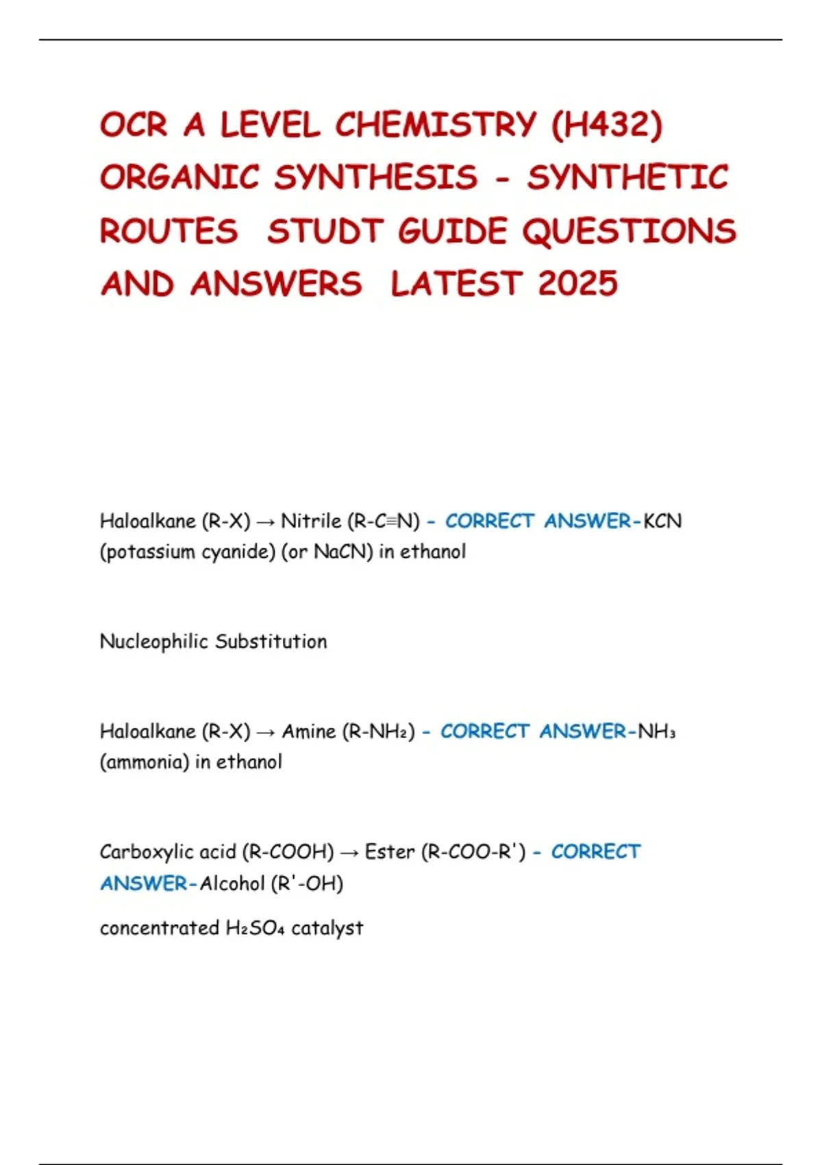 OCR A LEVEL CHEMISTRY (H432)