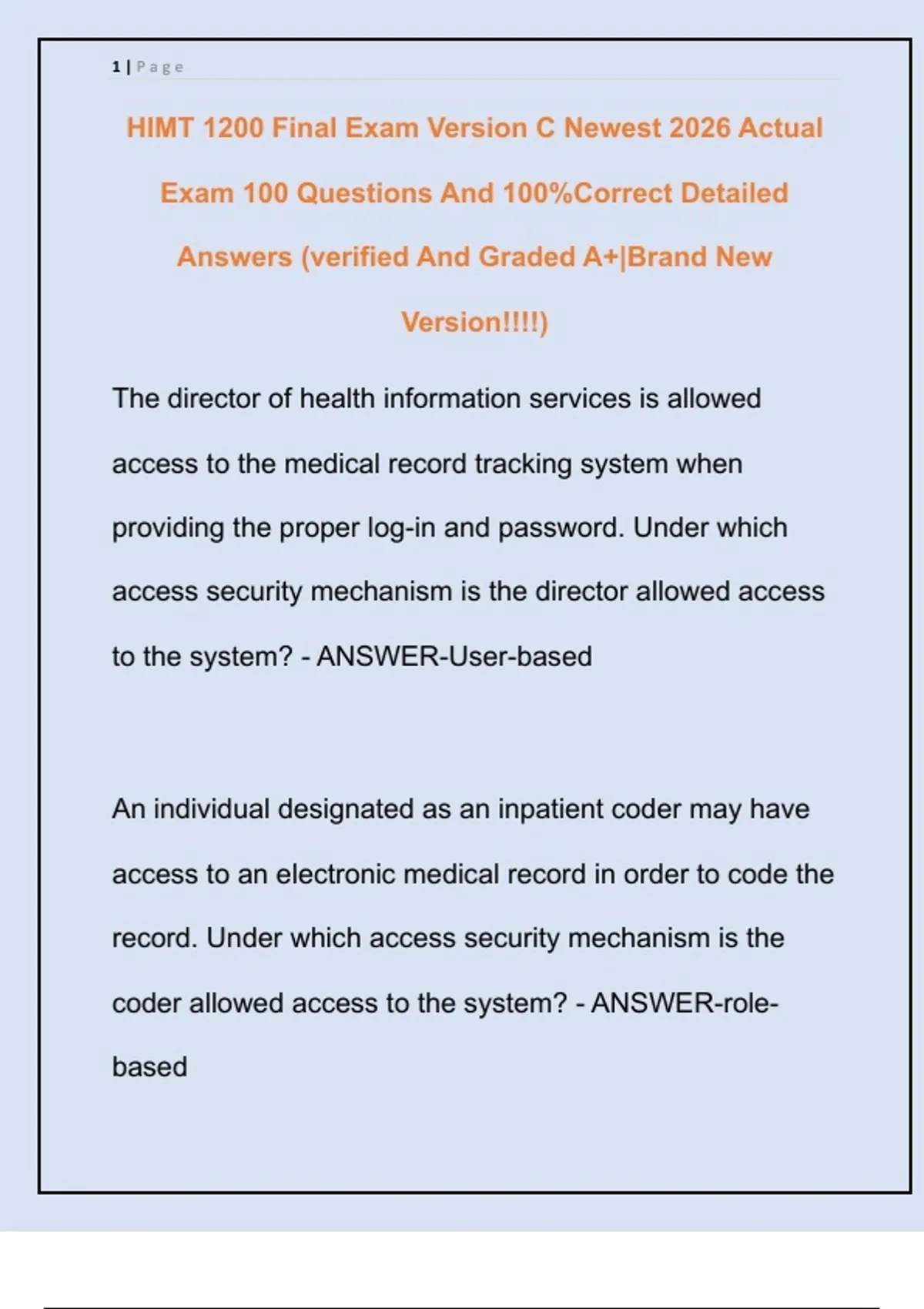 HIMT 1200 Final Exam Version C Newest 2026 Actual