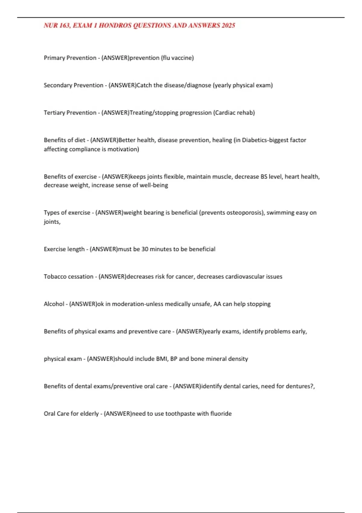 , NUR 163, EXAM 1 HONDROS QUESTIONS AND ANSWERS 2025