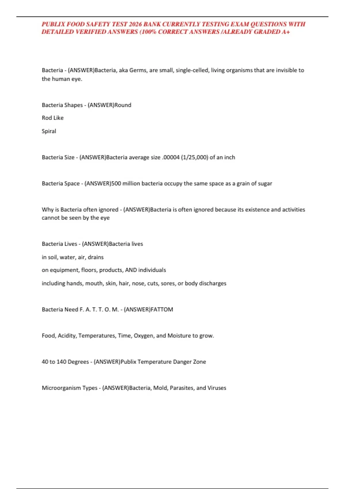 , PUBLIX FOOD SAFETY TEST 2026 BANK CURRENTLY TESTING EXAM QUESTIONS WITH