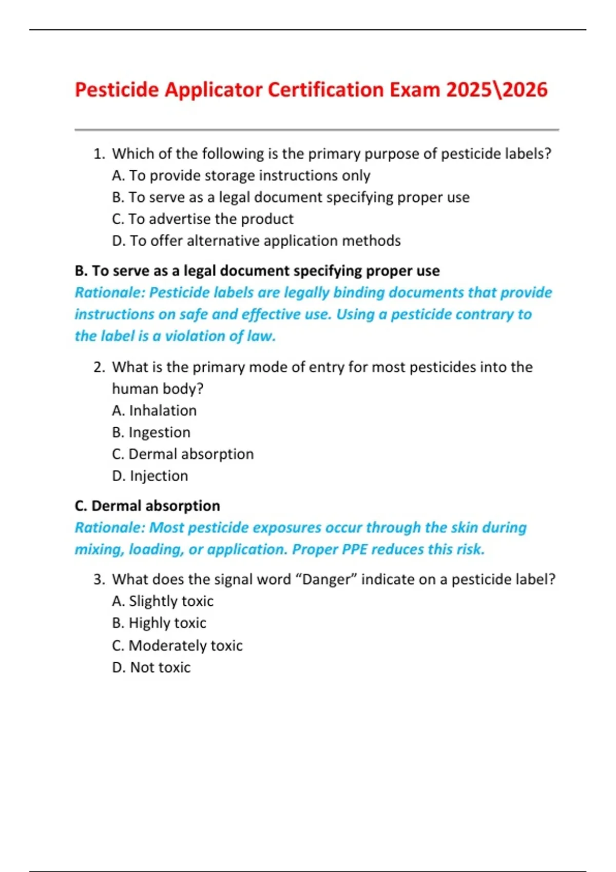 Pesticide Applicator Certification Exam 2025\2026