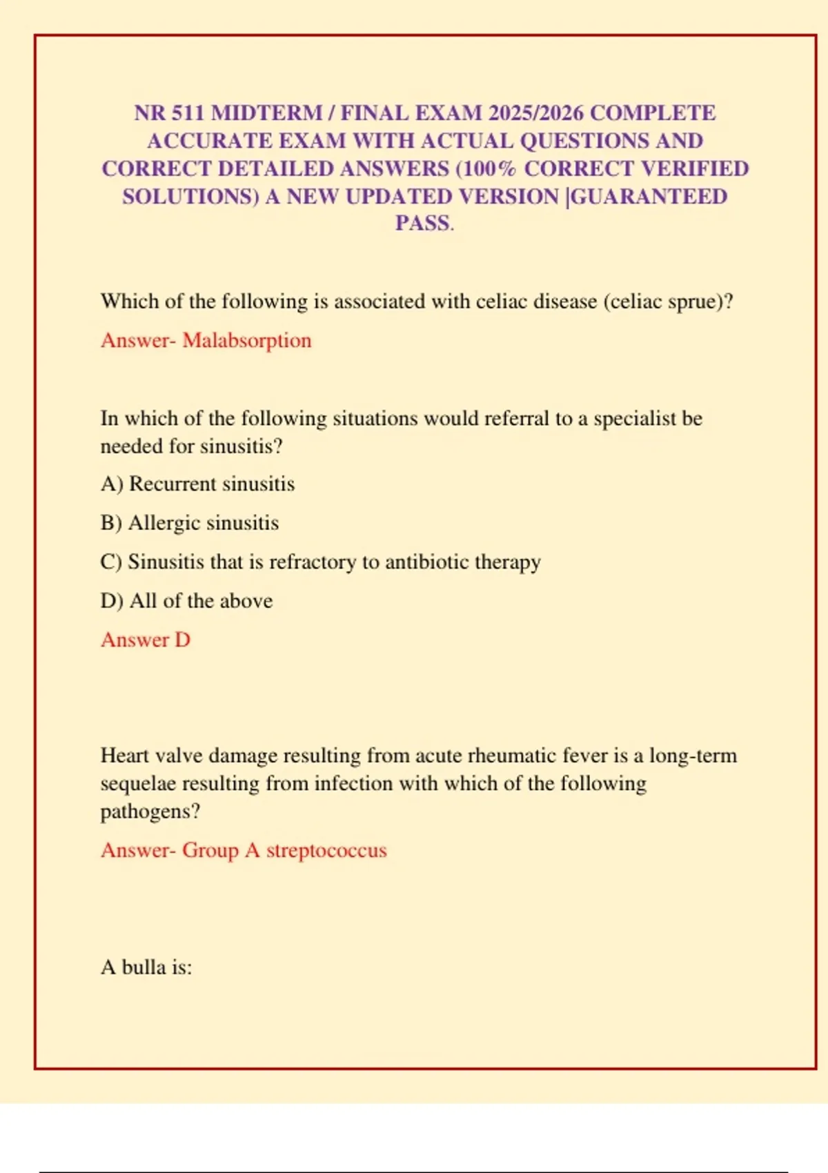NR 511 MIDTERM / FINAL EXAM 2025/2026 COMPLETE ACCURATE EXAM WITH ACTUAL QUESTIONS AND CORRECT DETAILED ANSWERS (100% CORRECT VERIFIED SOLUTIONS) A NEW UPDATED VERSION |GUARANTEED PASS