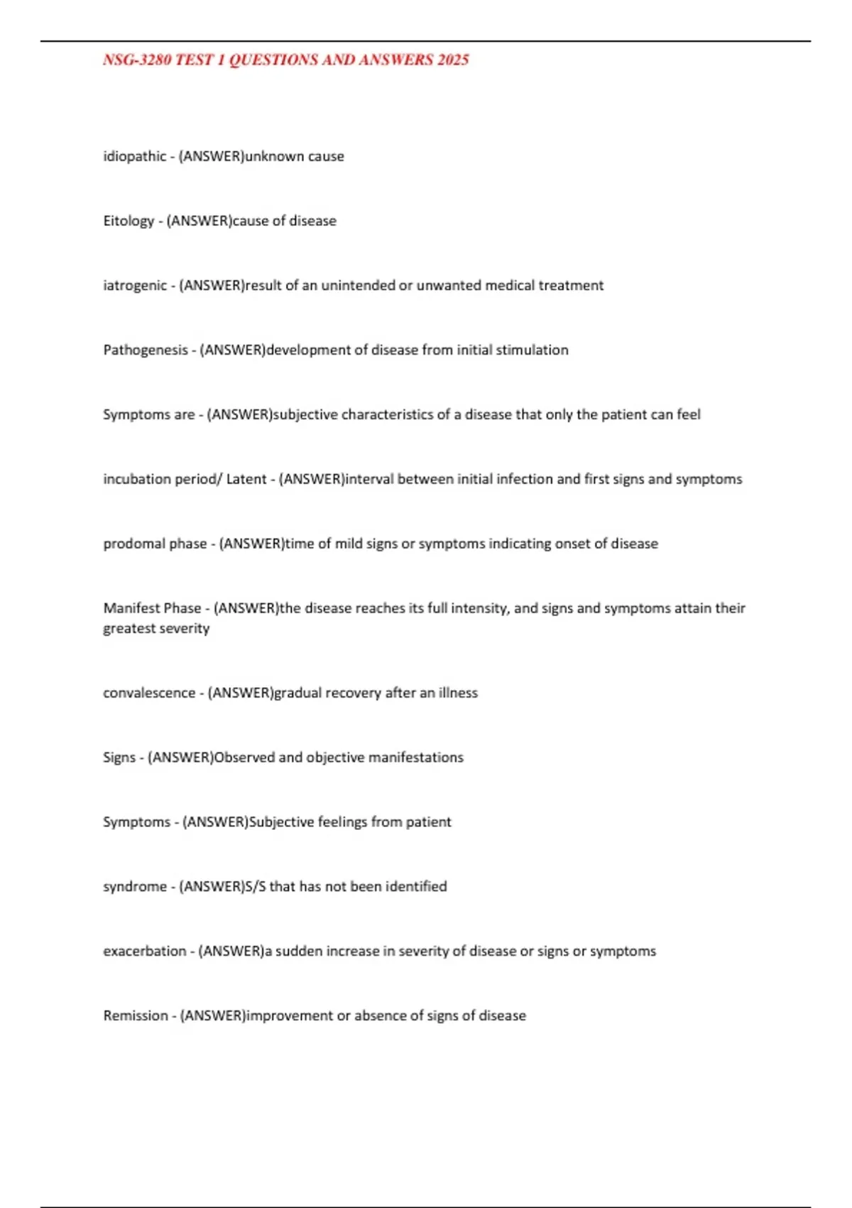 , NSG-3280 TEST 1 QUESTIONS AND ANSWERS 2025