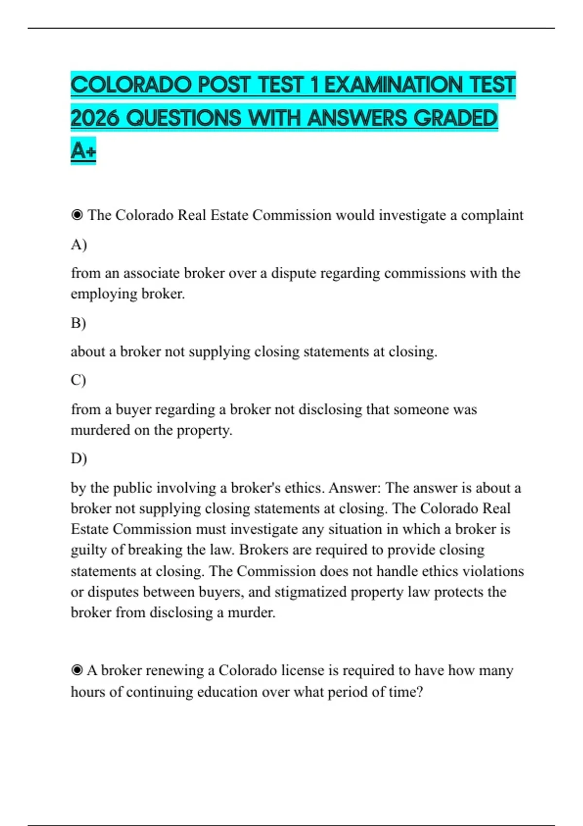 , ◉ Under Colorado real estate license law, which of the following