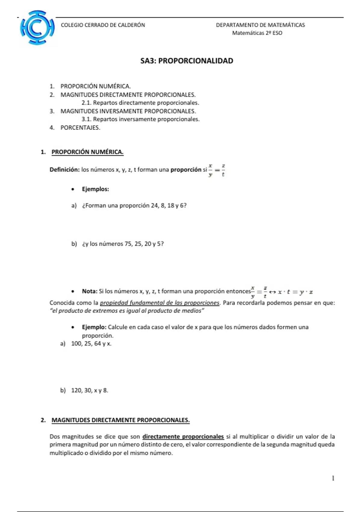 , COLEGIO CERRADO DE CALDERÓN DEPARTAMENTO DE MATEMÁTICAS