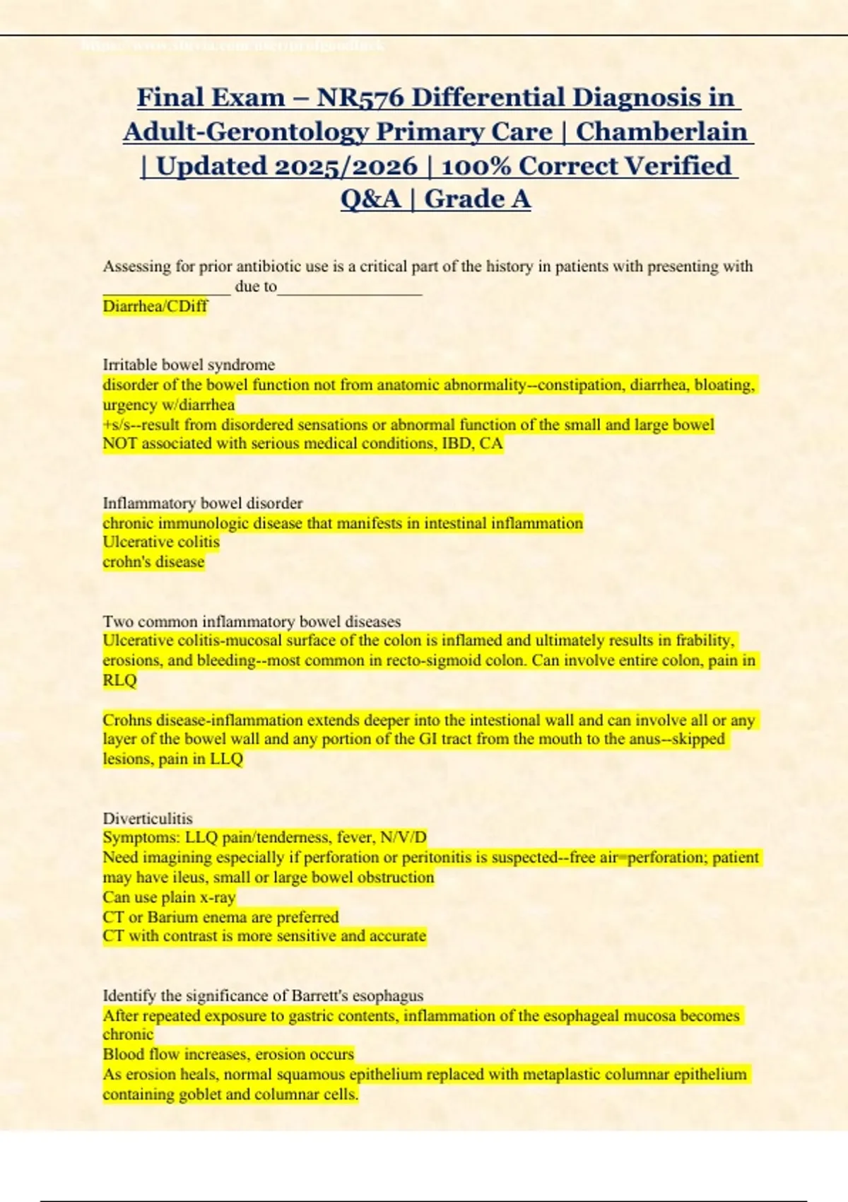 Final Exam – NR576 Differential Diagnosis in