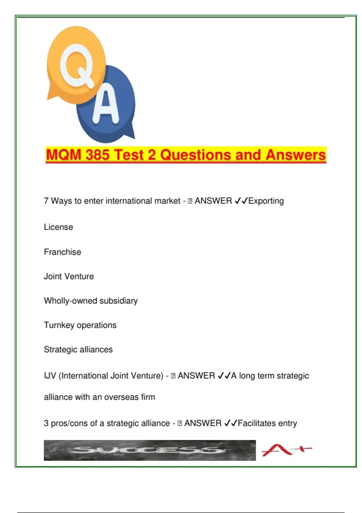IJV (International Joint Venture) - 🧠 ANSWER ✔✔A long term strategic