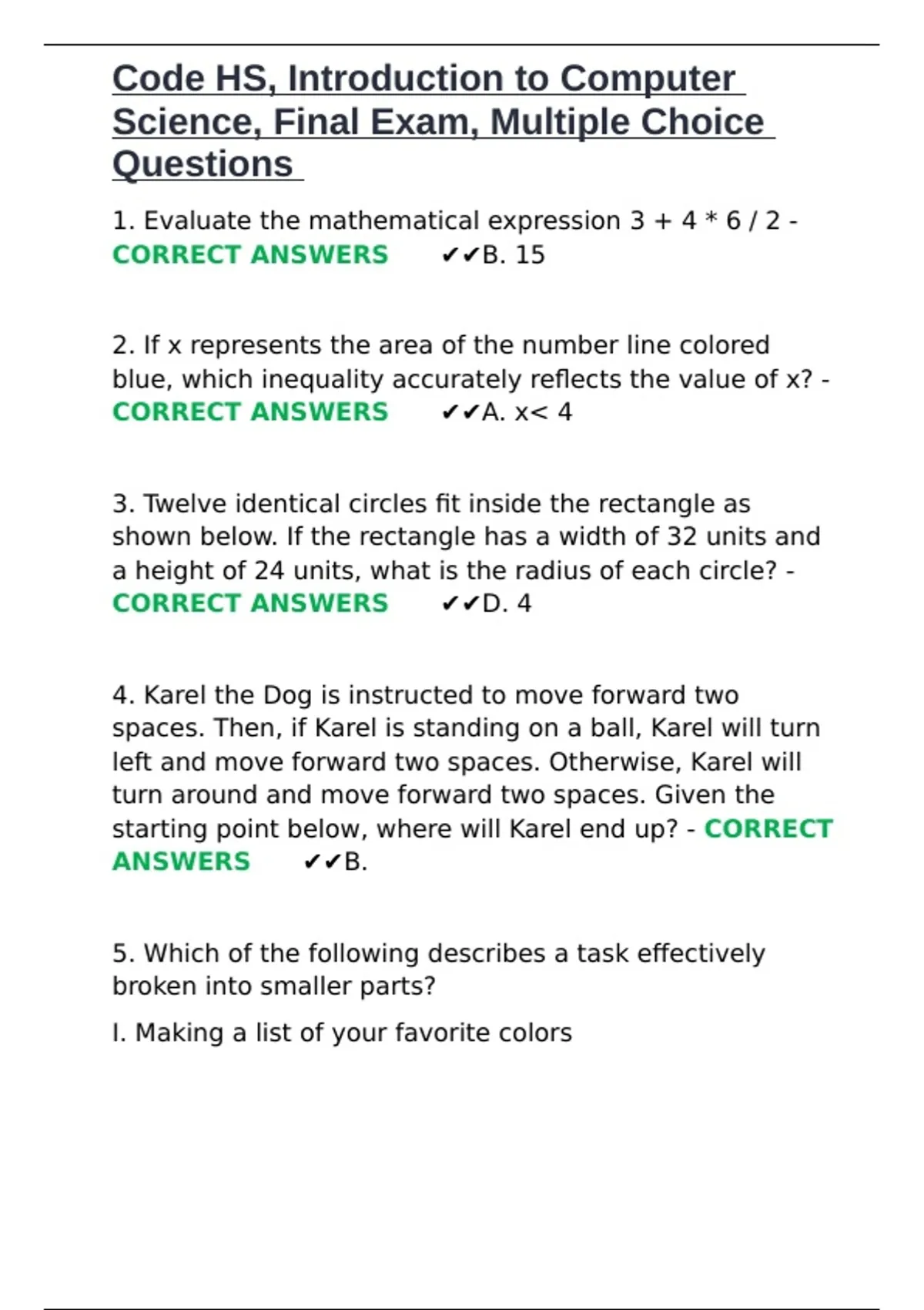 CORRECT ANSWERS ✔✔A. x< 4