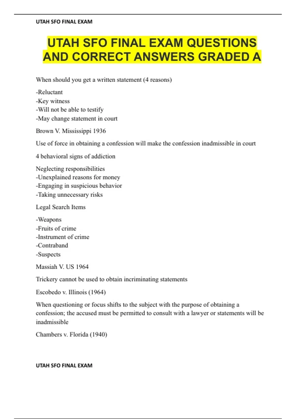 UTAH SFO FINAL EXAM QUESTIONS AND CORRECT ANSWERS GRADED A