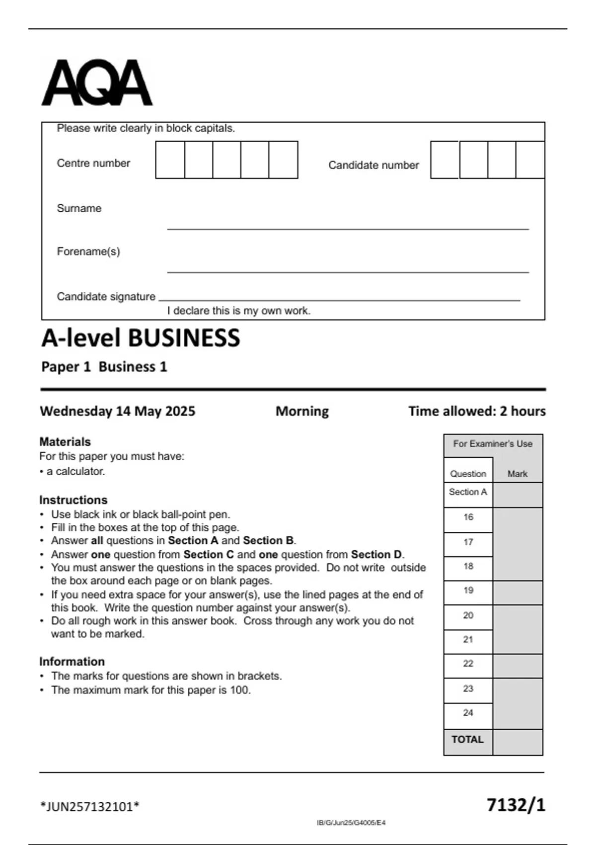 Wednesday 14 May 2025 Morning Time allowed: 2 hours