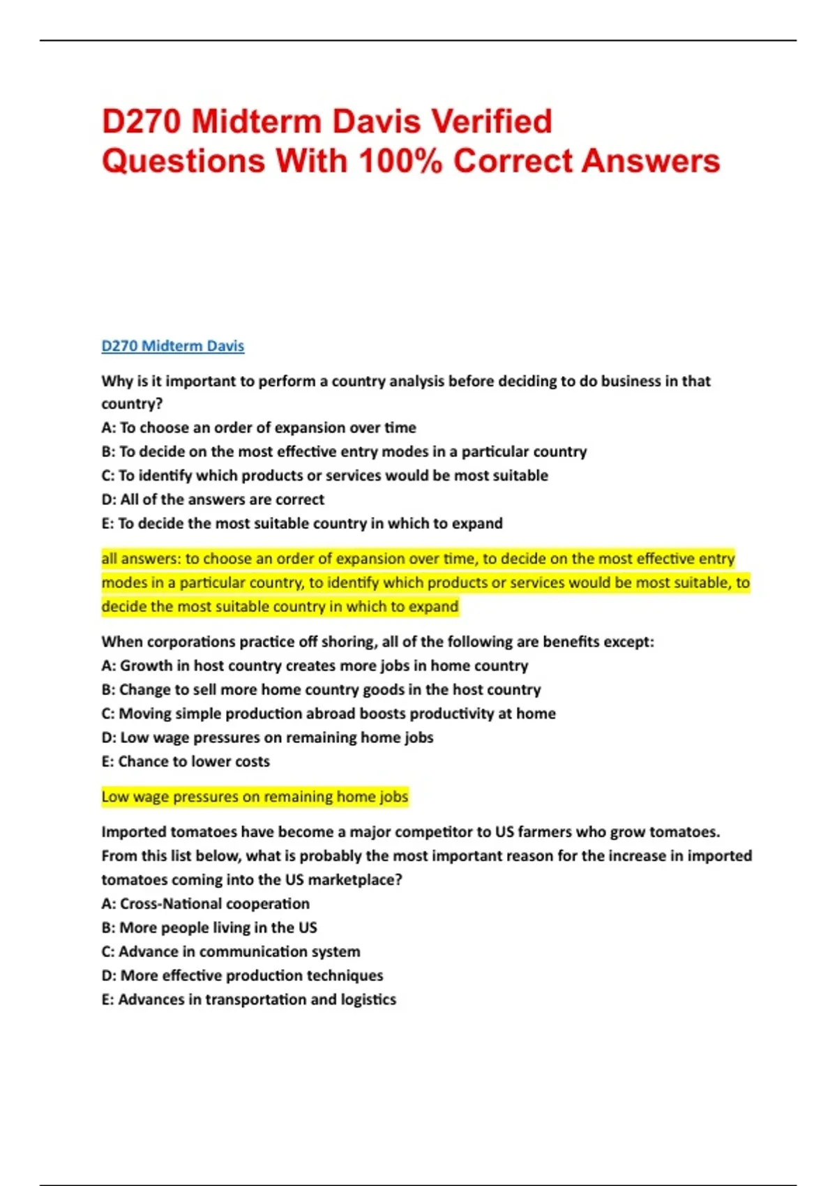 Questions With 100% Correct Answers