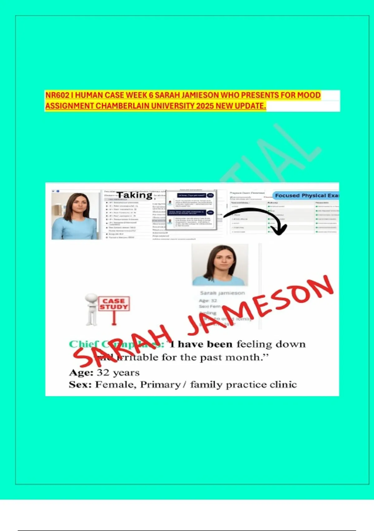 NR602 I HUMAN CASE WEEK 6 SARAH JAMIESON WHO PRESENTS FOR MOOD ASSIGNMENT CHAMBERLAIN UNIVERSITY 2025 NEW UPDATE.