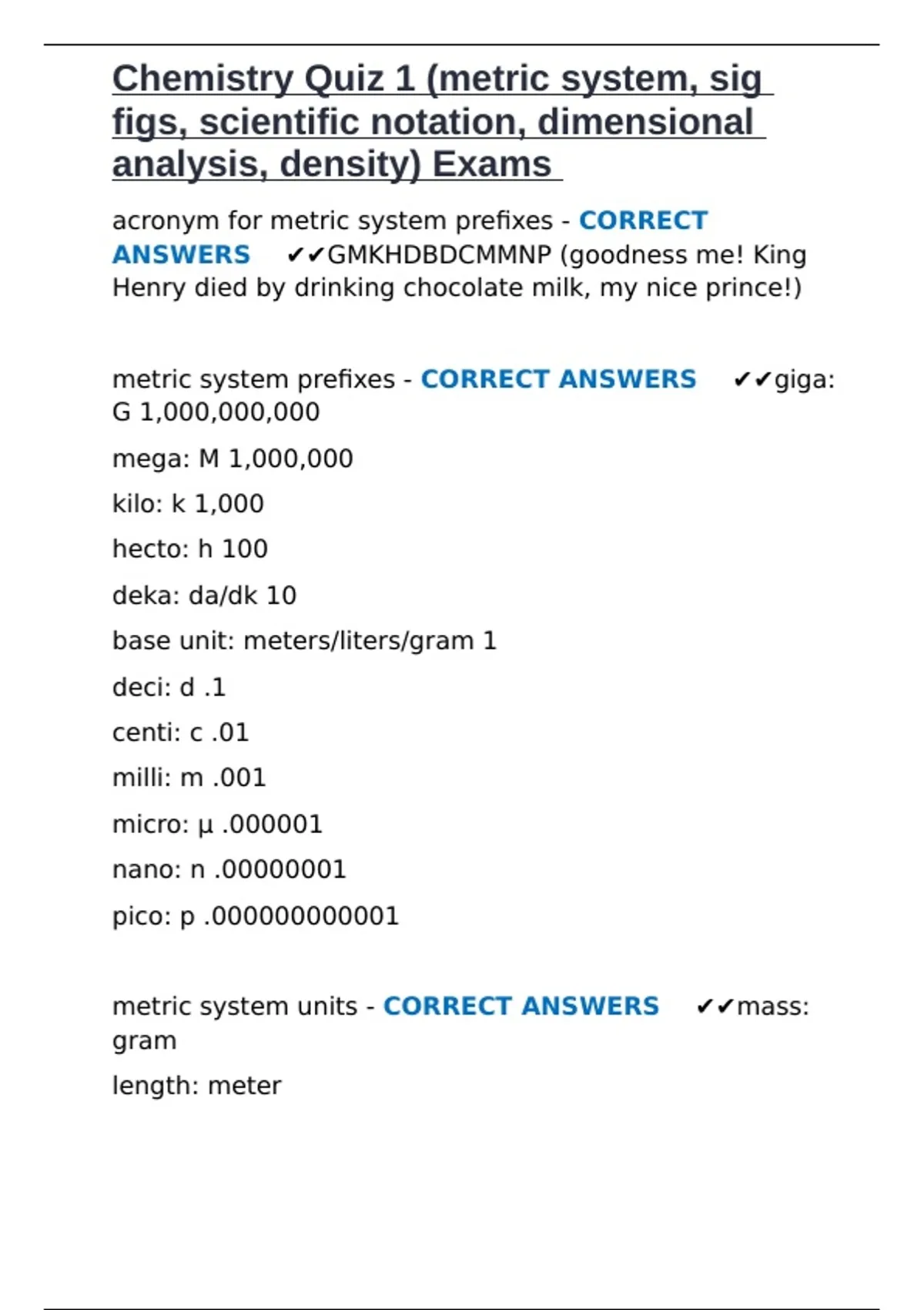 Chemistry Quiz 1 (metric system, sig figs, scientific notation, dimensional analysis, density) Exams.docx