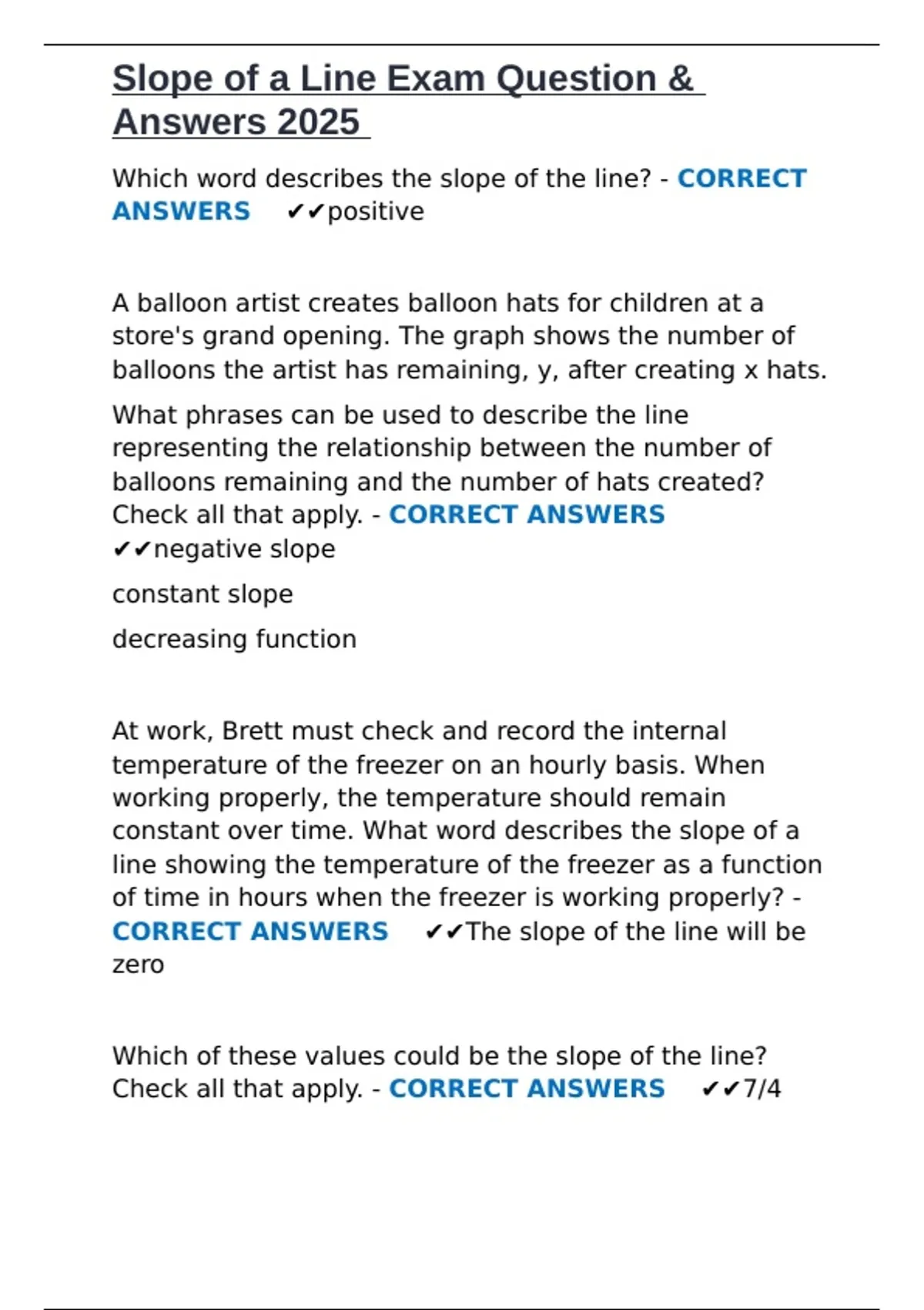 CORRECT ANSWERS ✔✔The slope of the line will be