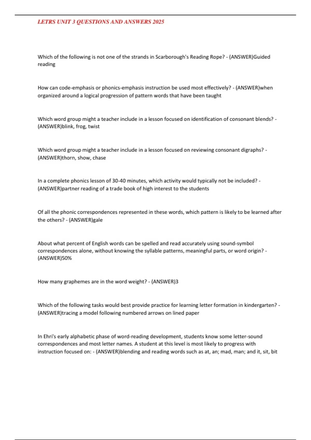 LETRS UNIT 3 QUESTIONS AND ANSWERS 2025