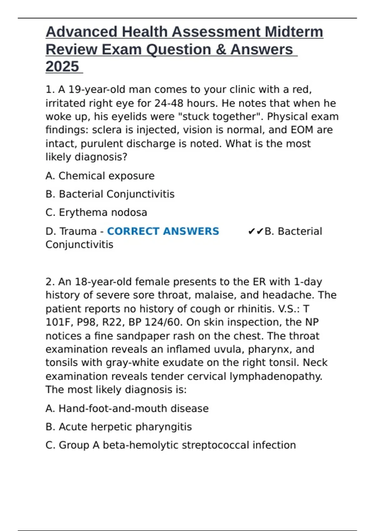 Advanced Health Assessment Midterm Review Exam Question & Answers 2025.docx