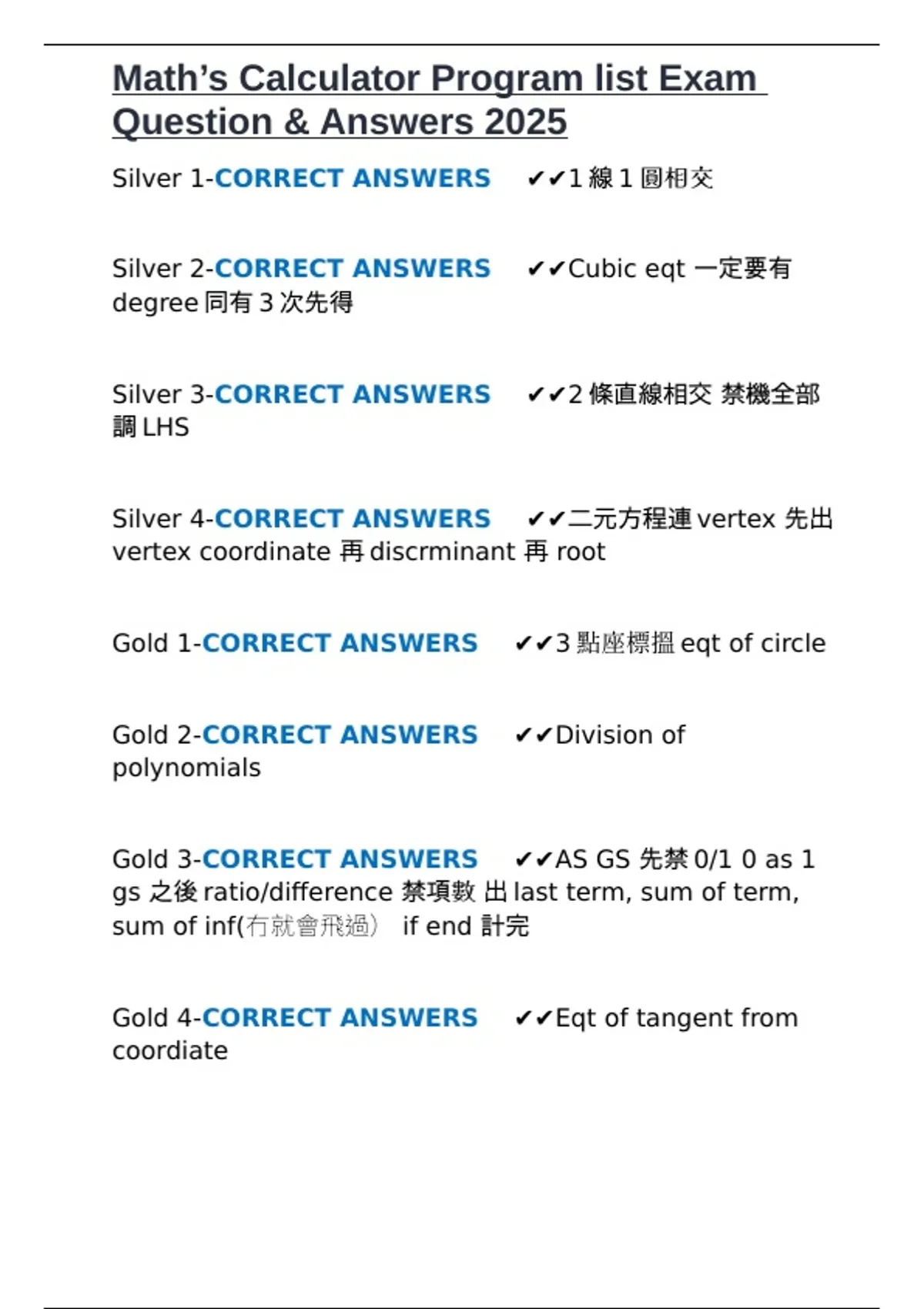 Math’s Calculator Program list Exam Question & Answers 2025.docx