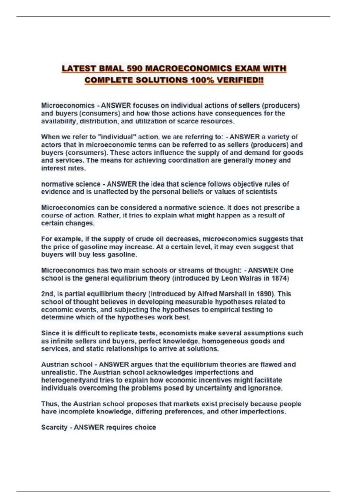 LATEST BMAL 590 MACROECONOMICS EXAM WITH COMPLETE SOLUTIONS 100% VERIFIED!!...