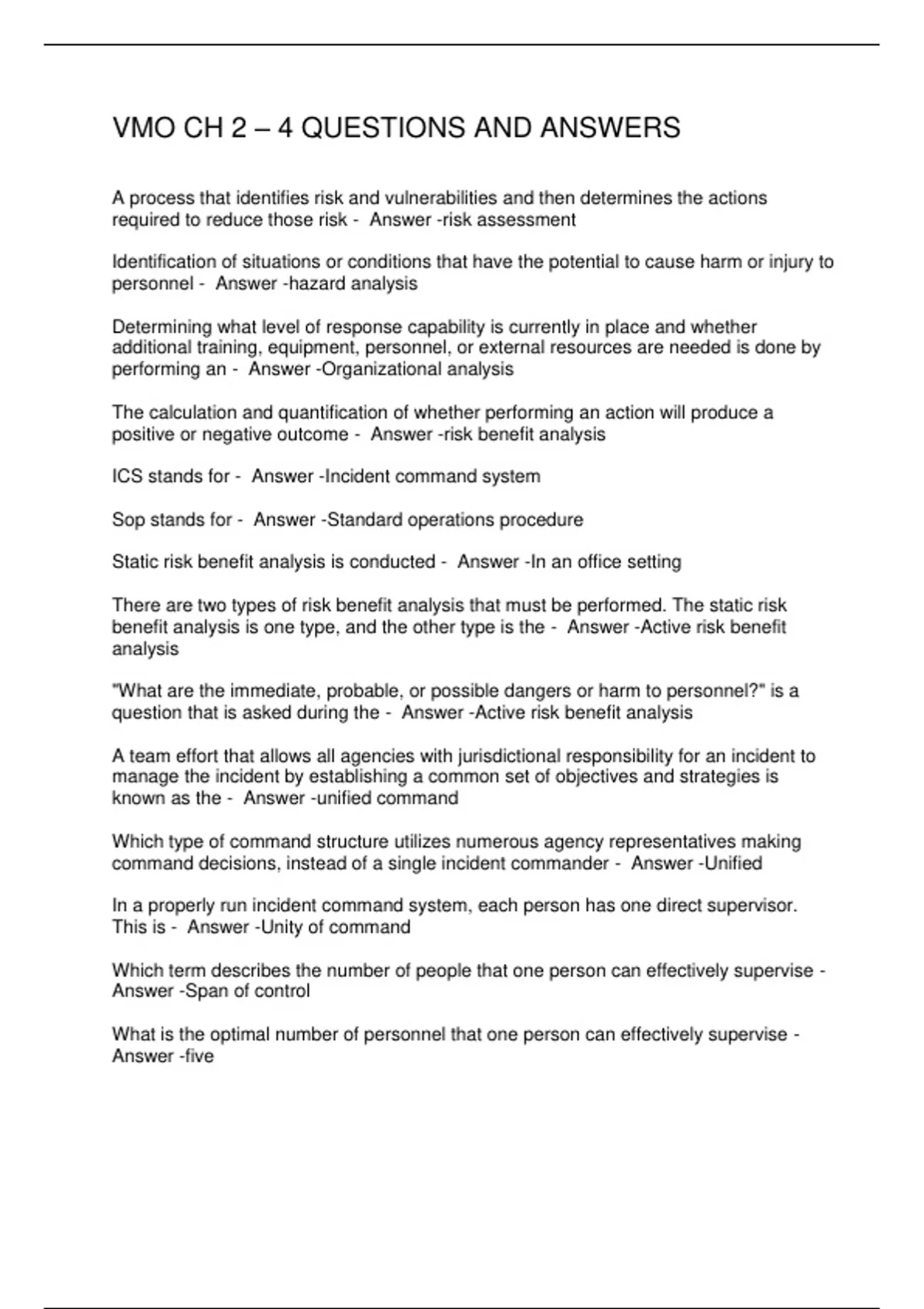 VMO CH 2 – 4 QUESTIONS AND ANSWERS