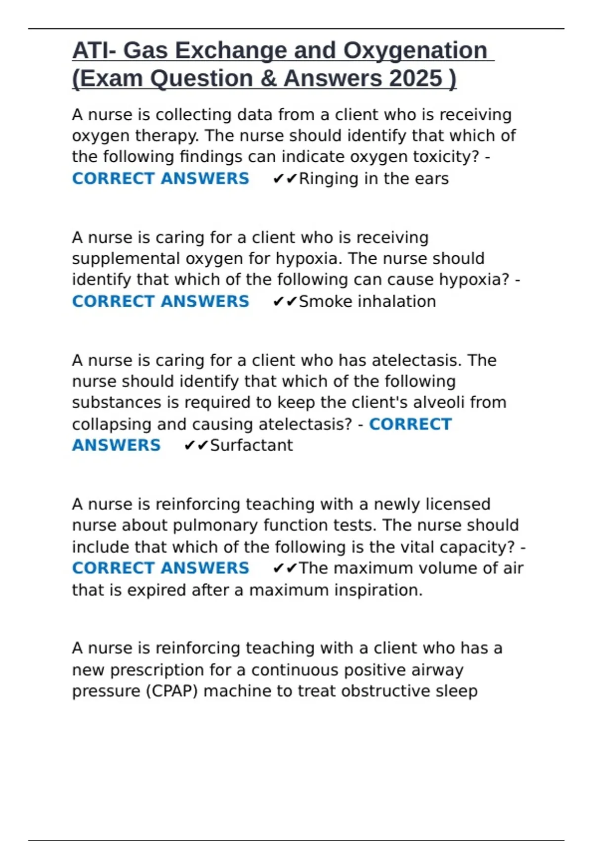 CORRECT ANSWERS ✔✔Smoke inhalation