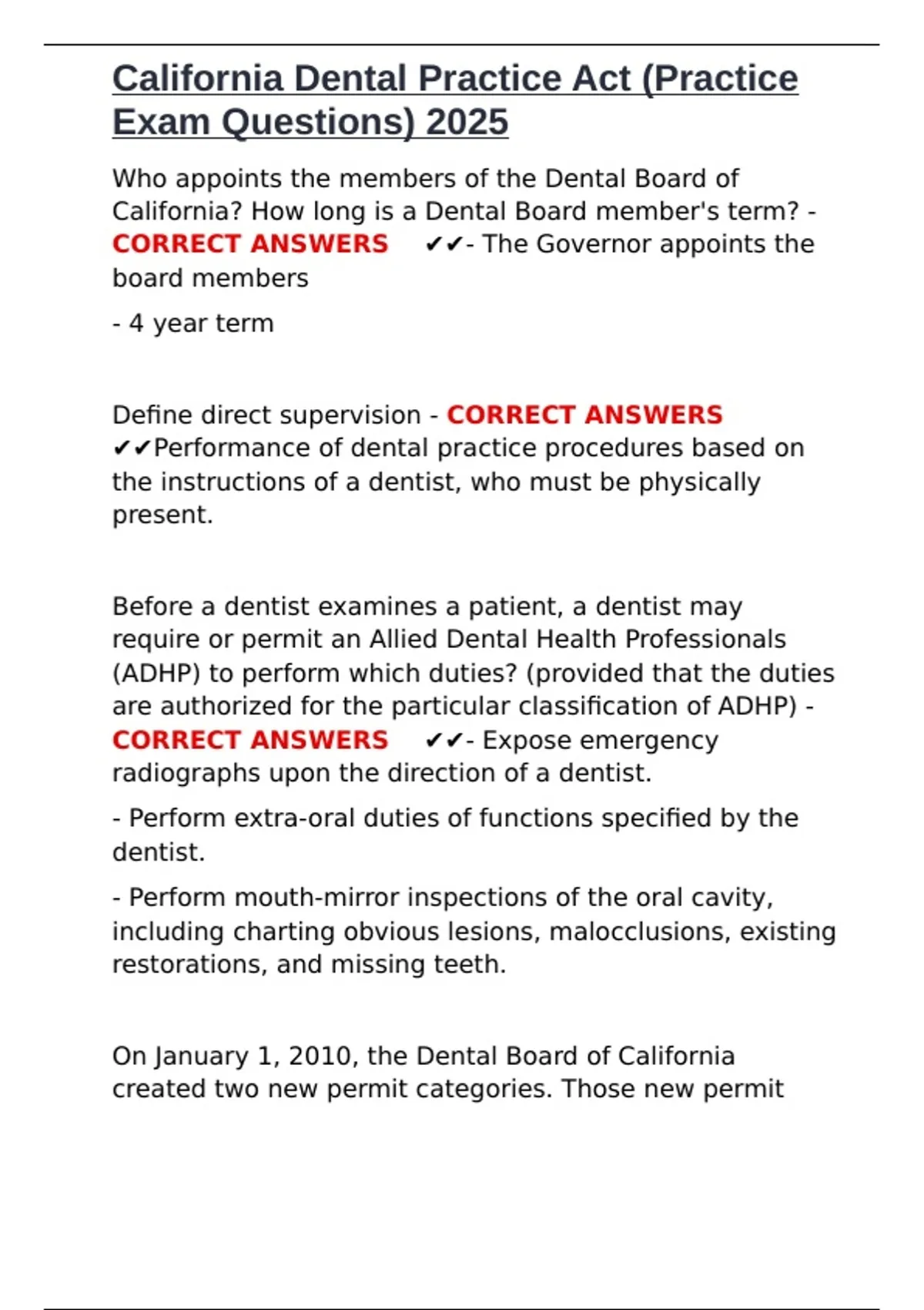 supervision of a licensed dentist. - CORRECT ANSWERS