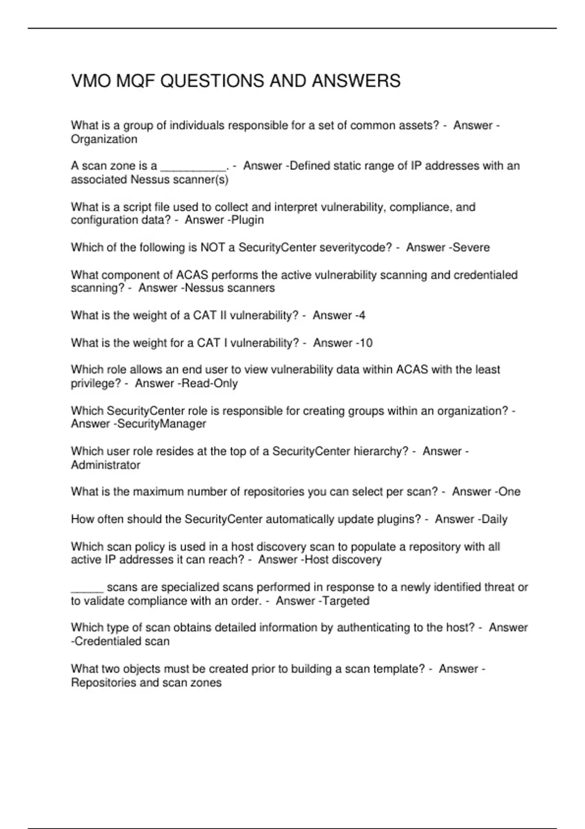 VMO MQF QUESTIONS AND ANSWERS