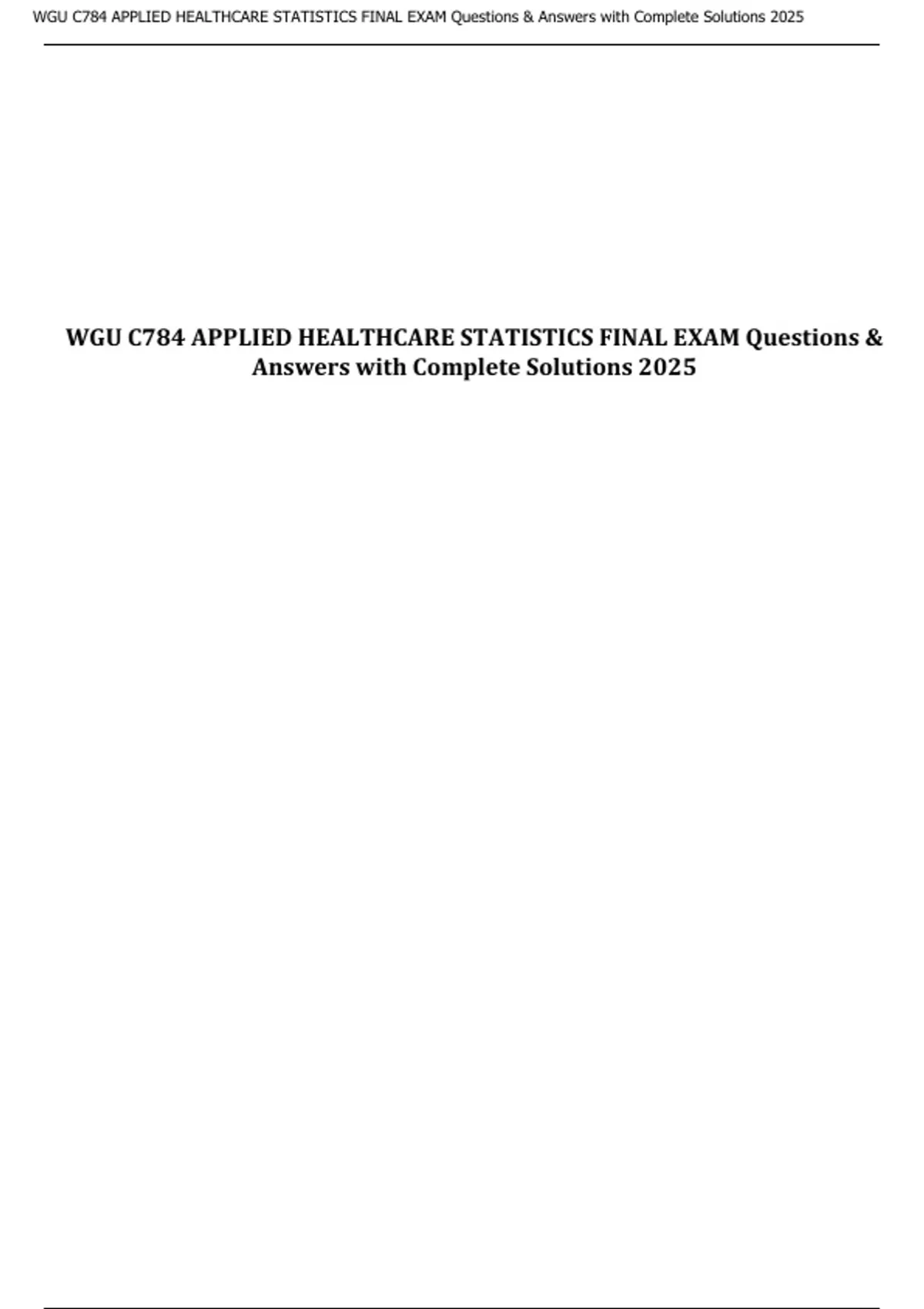 , WGU C784 APPLIED HEALTHCARE STATISTICS FINAL EXAM Questions & Answers with Complete Solutions 2025