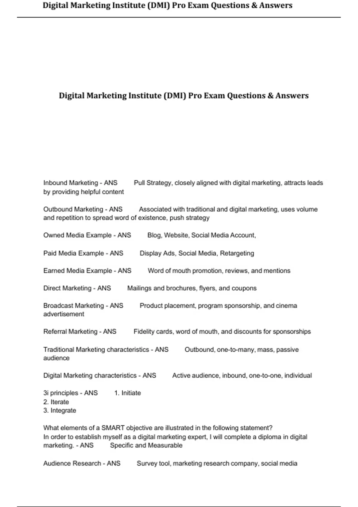 Digital Marketing Institute (DMI) Pro Exam Questions & Answers