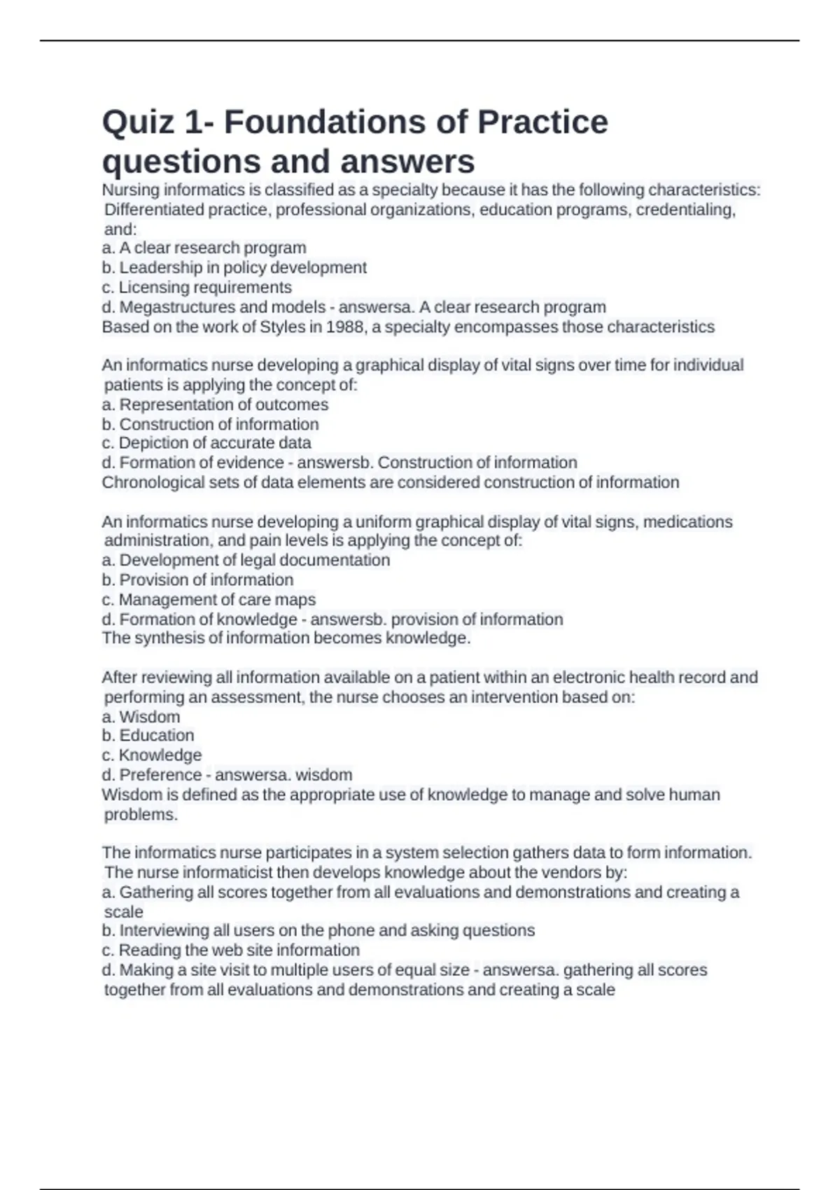 Quiz 1- Foundations of Practice
