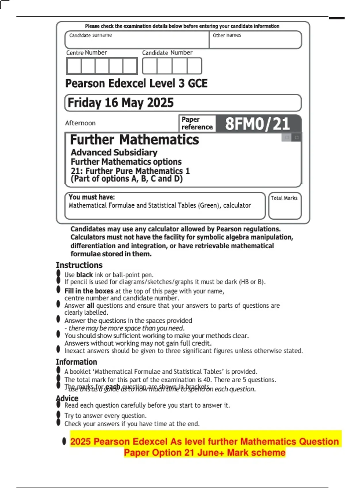 • 2025 Pearson Edexcel As level further Mathematics Question